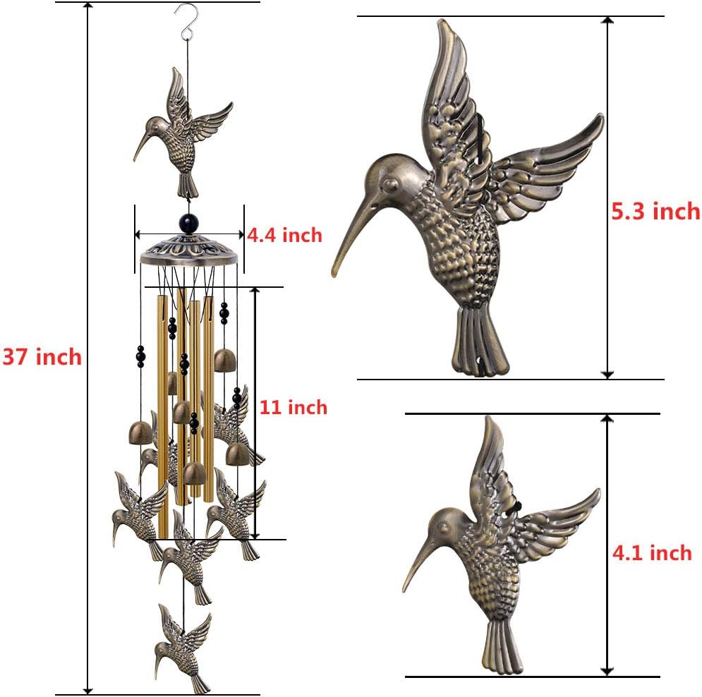 Large Hummingbird Wind Chimes Outdoor Indoor Decor -With 4 Tubes 6 Bells 7 Hummingbirds, Mobile Wind Catcher, Hummingbird Wind Bell for Home, Xmas Mom Gifts, Festival, Balcony, Tree, Garden Decoration