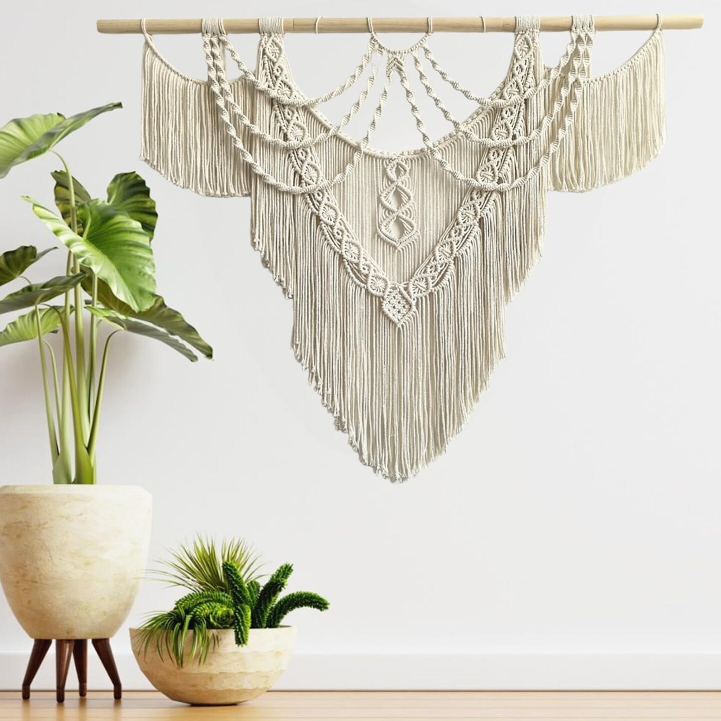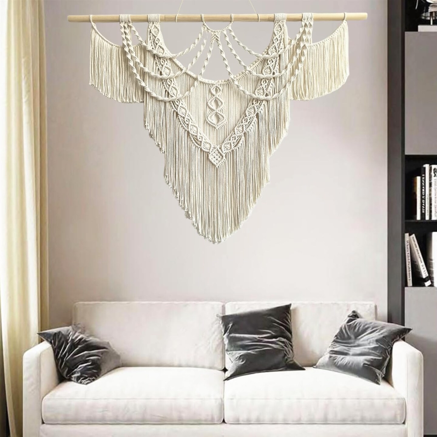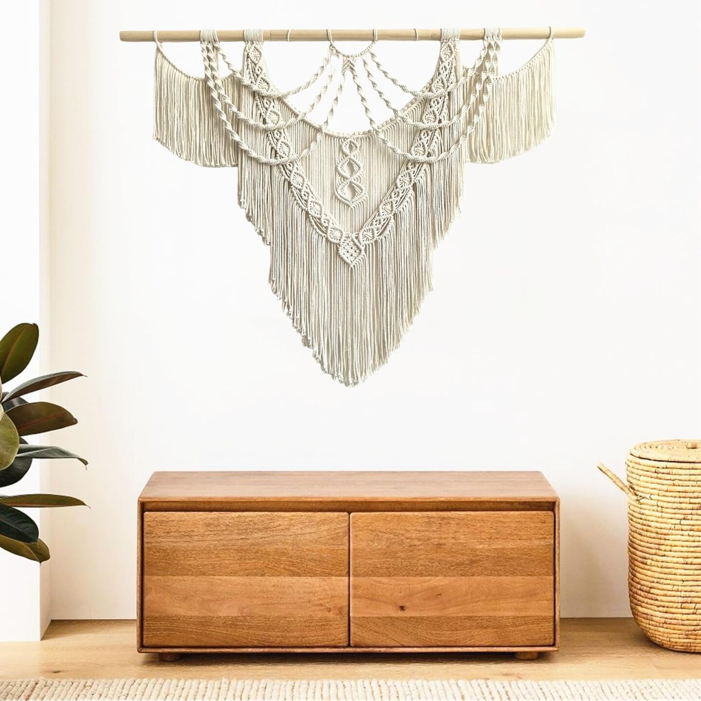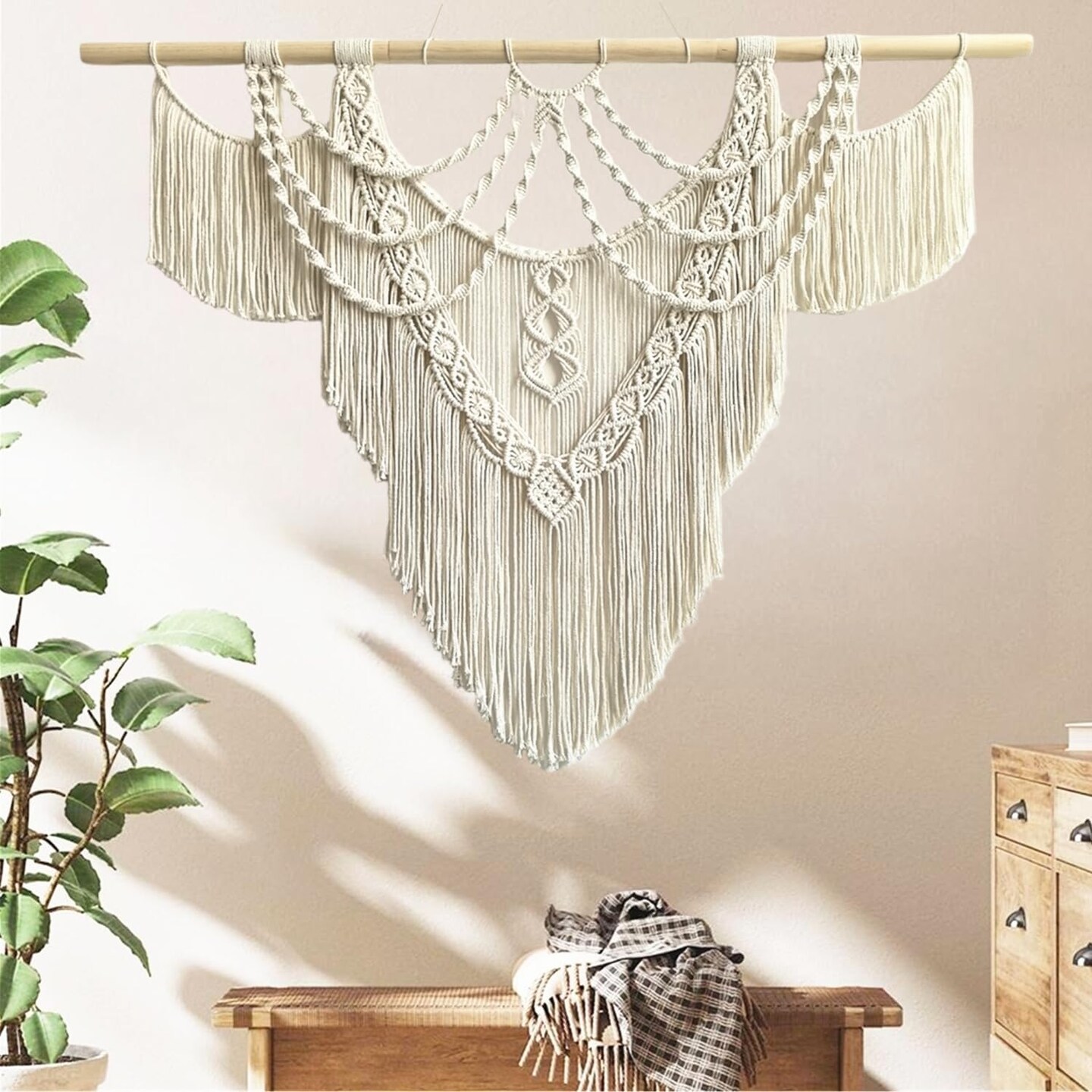 Large Macramé Wall Hanging – Handmade Boho Woven Tapestry Art for Chic Home Décor, Perfect for Bedrooms, Living Rooms, Apartments, Dorms, or Galleries – 43" x 32" (Tassel-A)