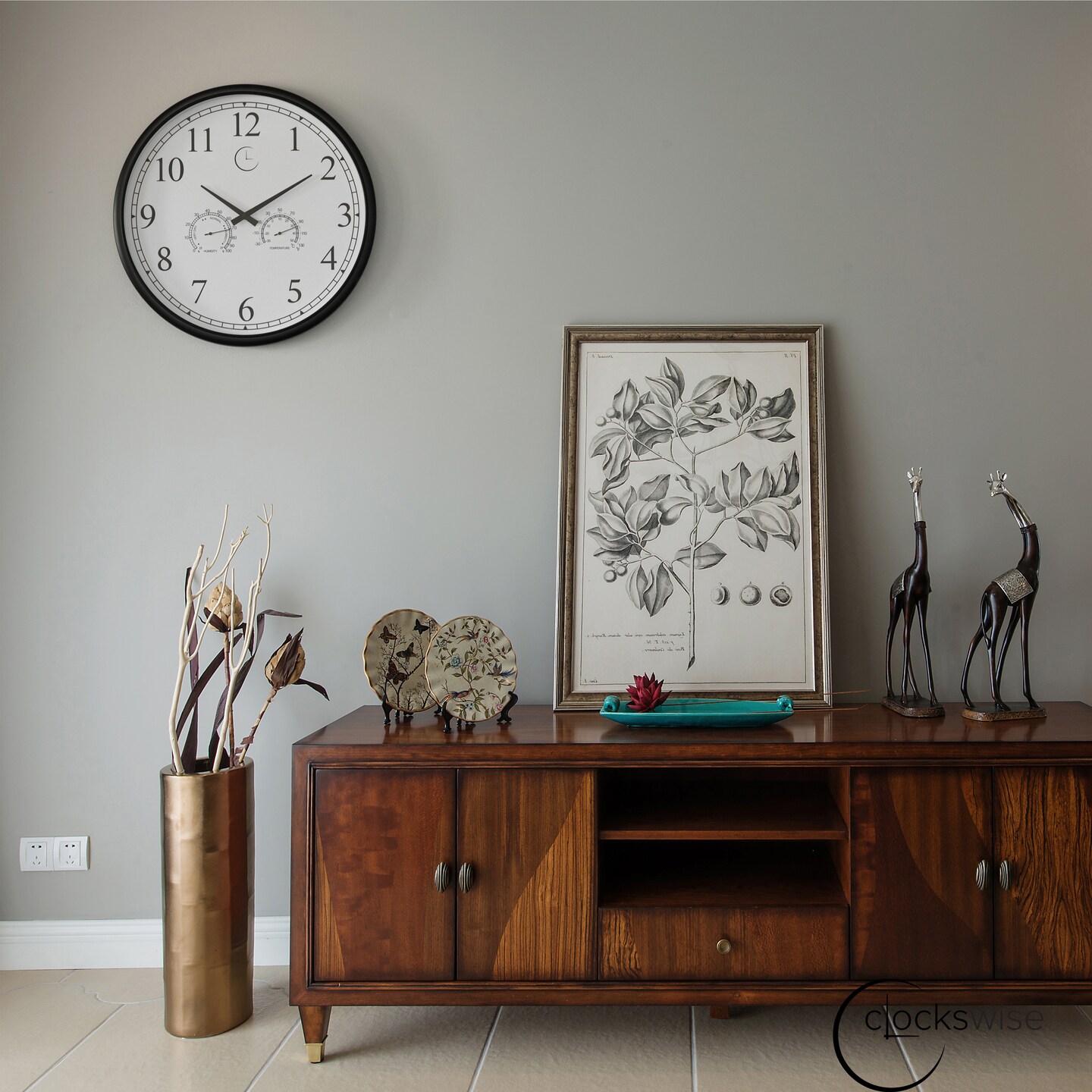 Large Outdoor Wall Clock Thermometer Combo, Waterproof Hygrometer Silent Battery Operated Clocks Timepiece Garden Weather Master Station for Home Indoor or Patio Pool Photography Props Black