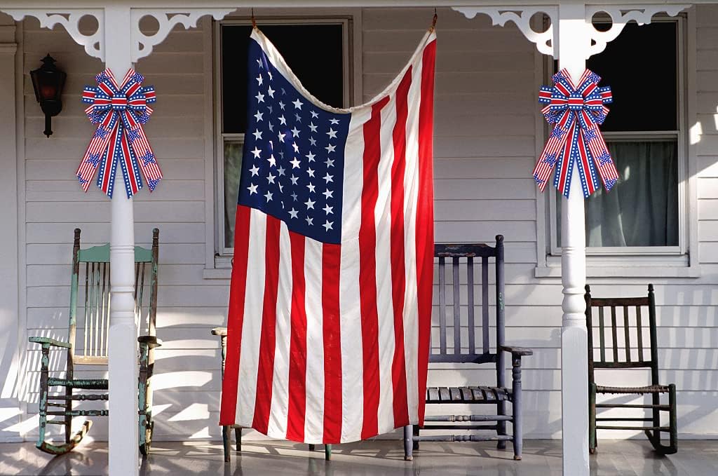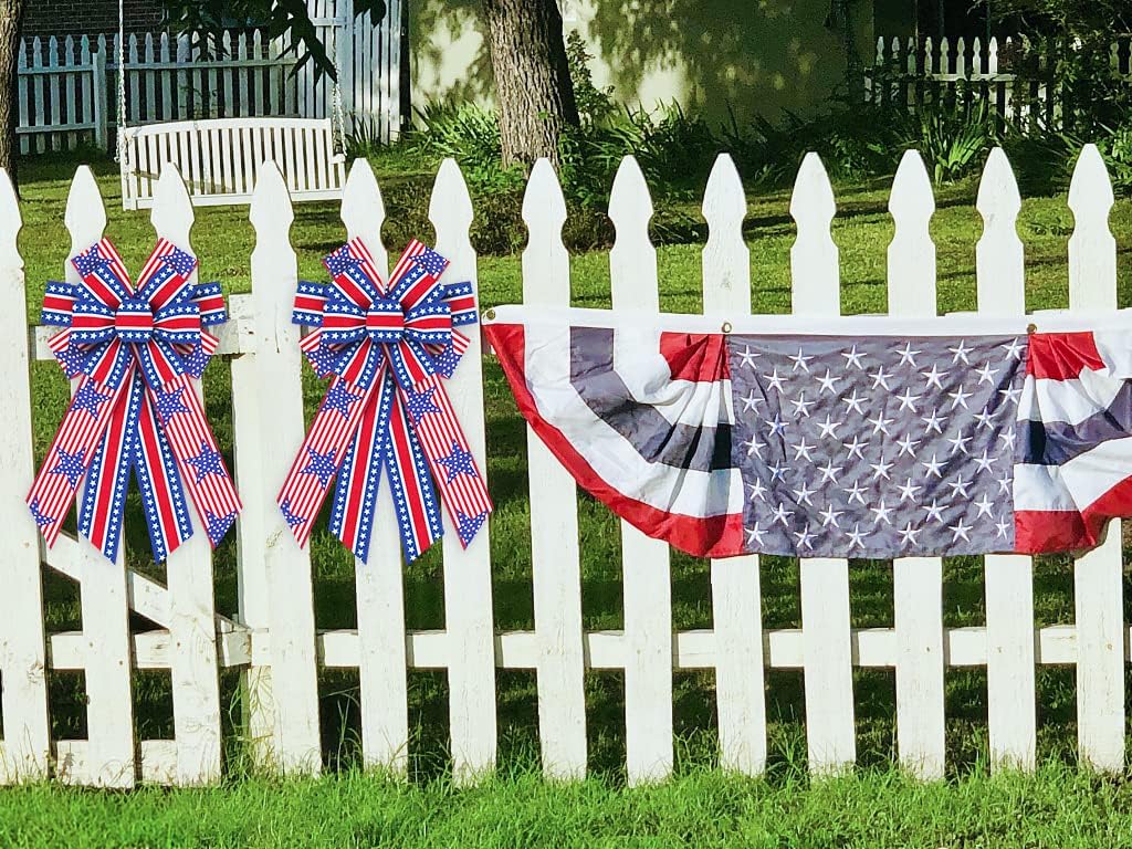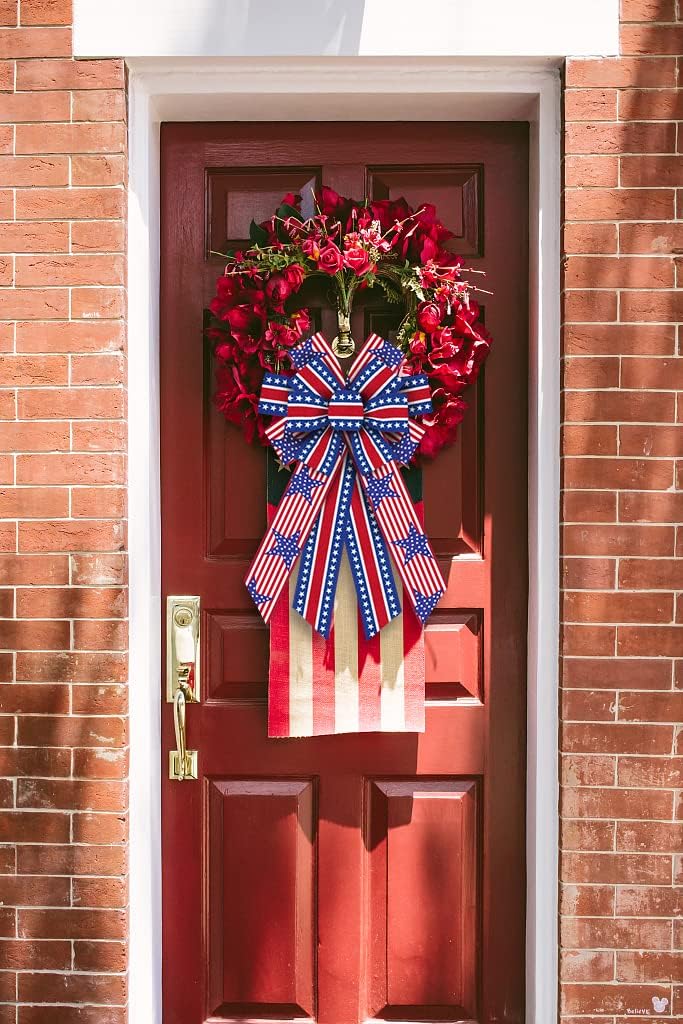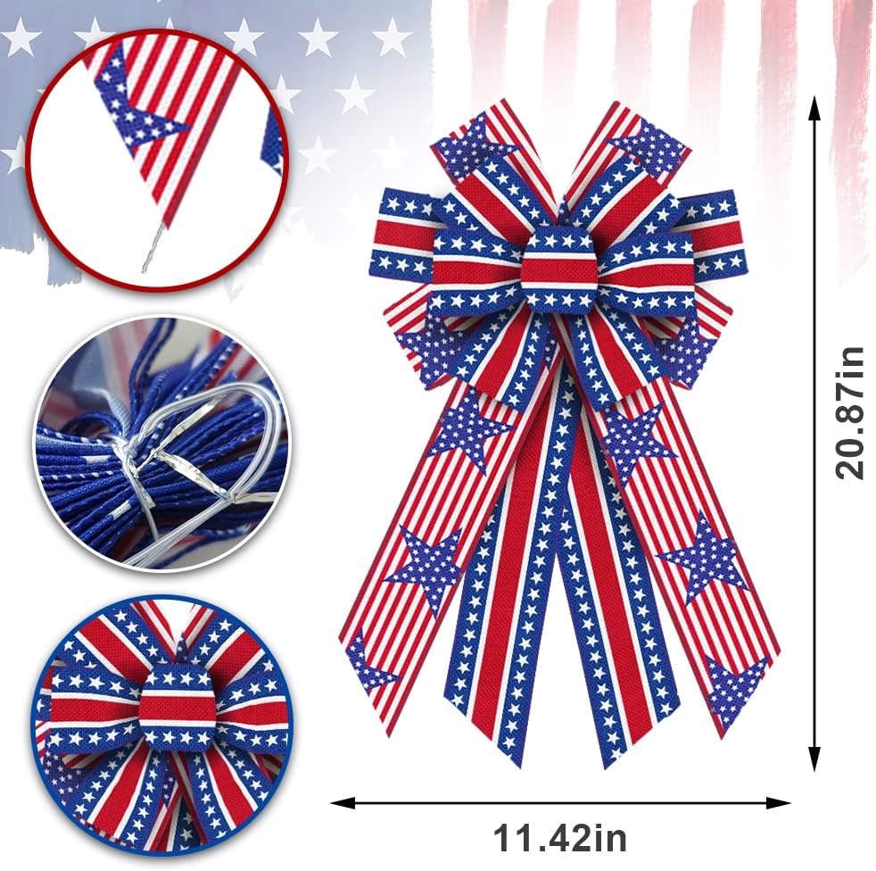Large Patriotic Wreath Bow – Red, White & Blue Stripes Burlap Bow for Front Door, Memorial Day & 4th of July Tree Topper, Indoor/Outdoor American Flag Holiday Decoration