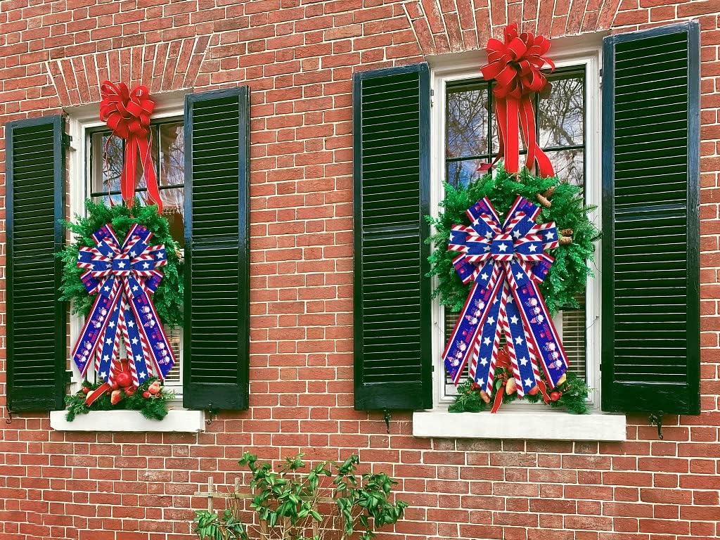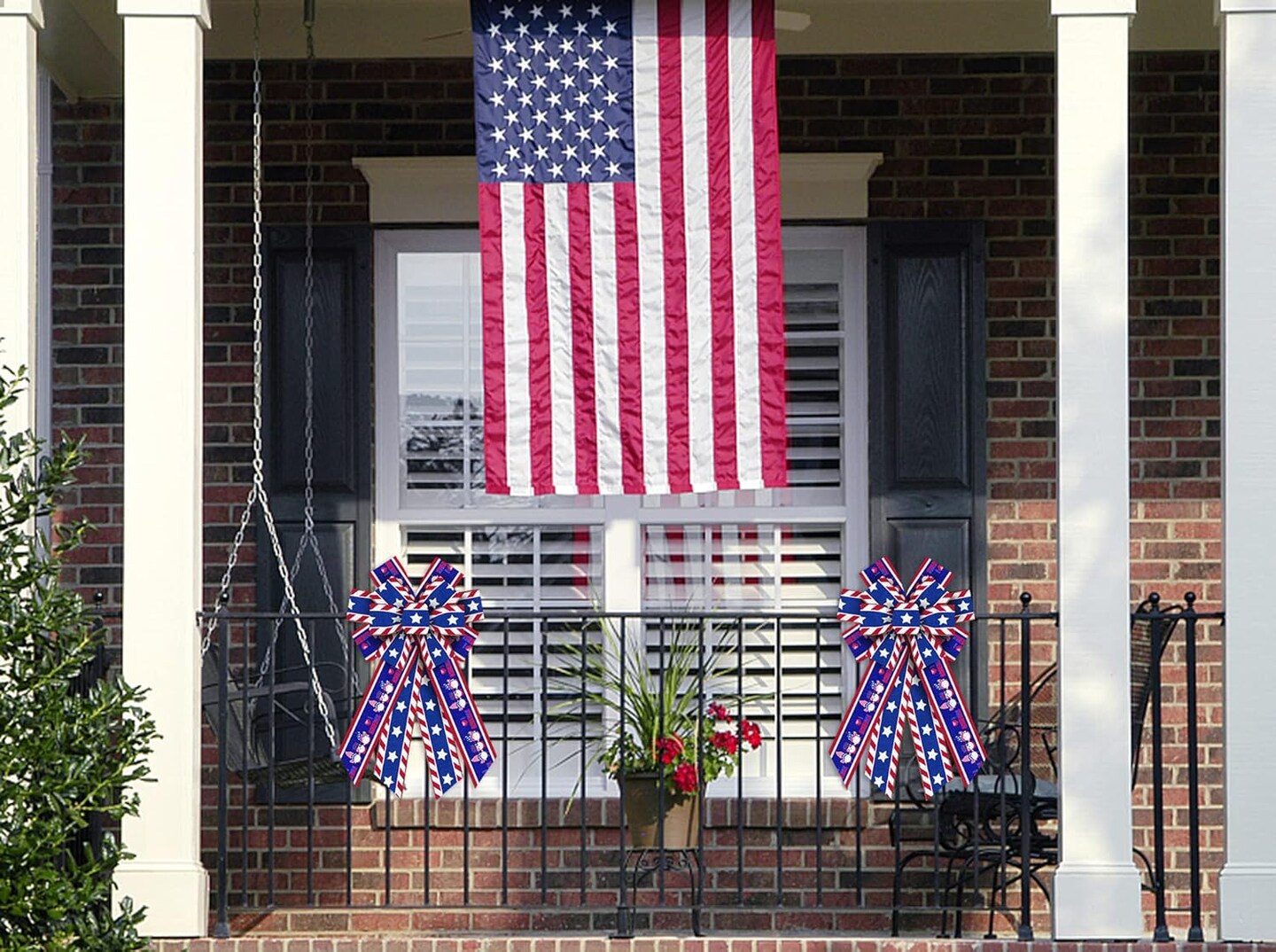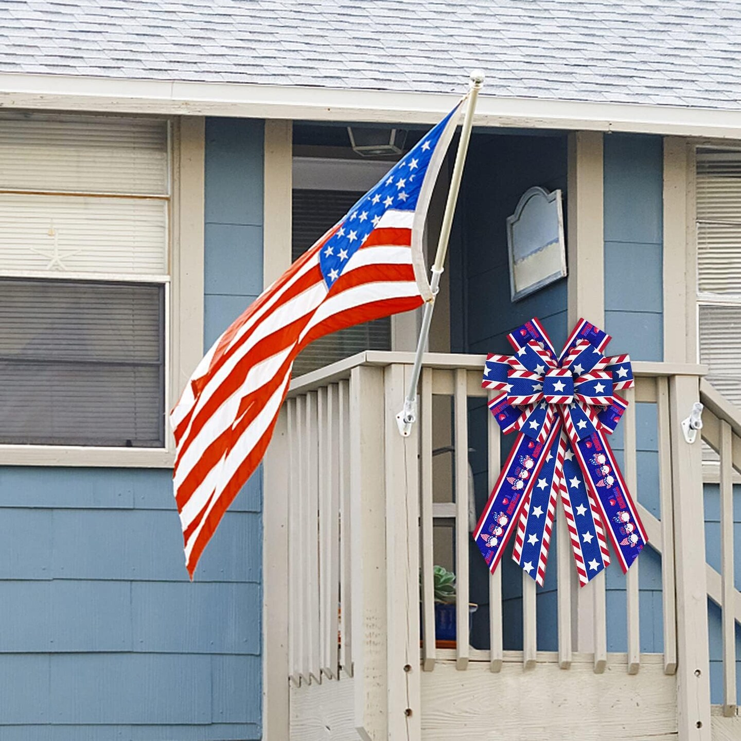 Large Patriotic Wreath Bows, Red Blue White Stripe Bows for Wreath 4th of July Star Bows for Front Door Memorial Day Gnomes America Flag Wreath Bows for Indooor Outdoor Fence Party Decor