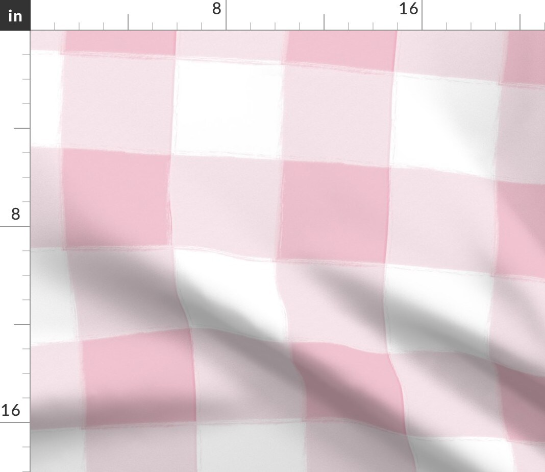 Large Pink Buffalo Check Gingham Checkered Plaid White Classic Nursery Kitchen Cottage Breakfast Custom Printed Fabric by Spoonflower Various Fabrics by the Yard or Fat Quarter