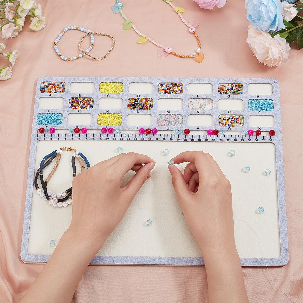 Large Rectangle Felt Beading Mat, Felt Bead Design Boards with Centimeter Alphabetic Scale Beads Tray Bead Pads for Art Crafts Jewelry Making Beading Supplies, 14.4x11inch