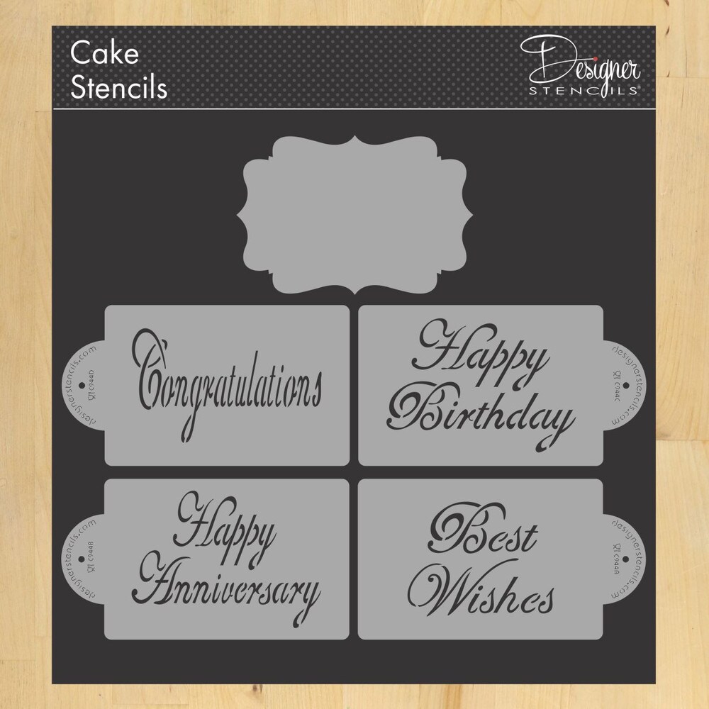 Large Script Celebration Cake Stencil Set | C944 by Designer Stencils | Cake Decorating Tools |