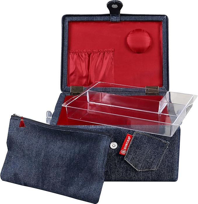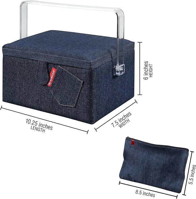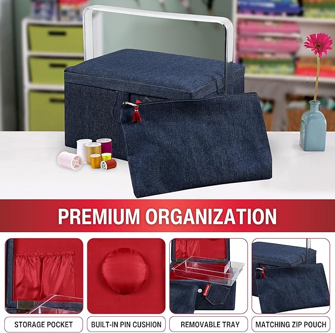 Large Sewing Basket Denim with Matching Zipper Pouch