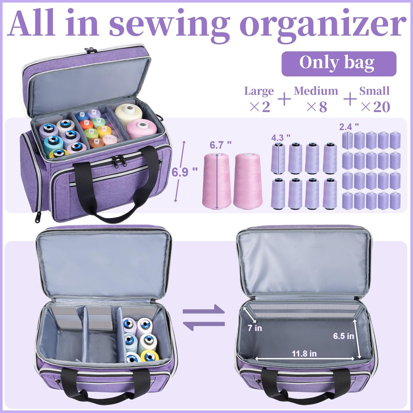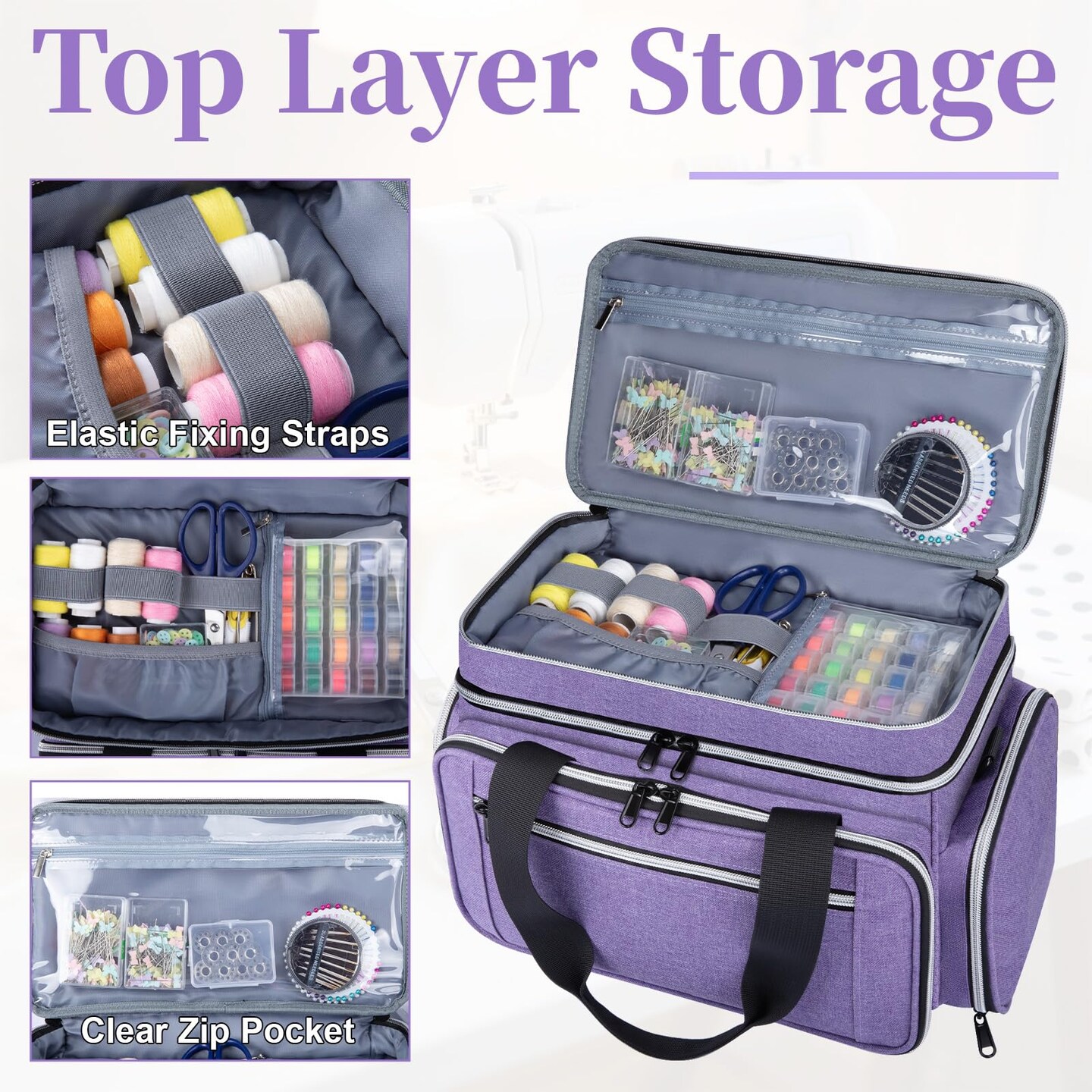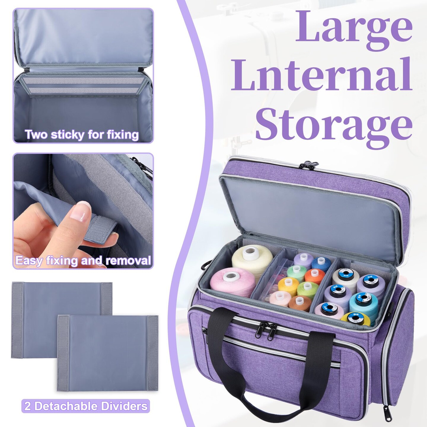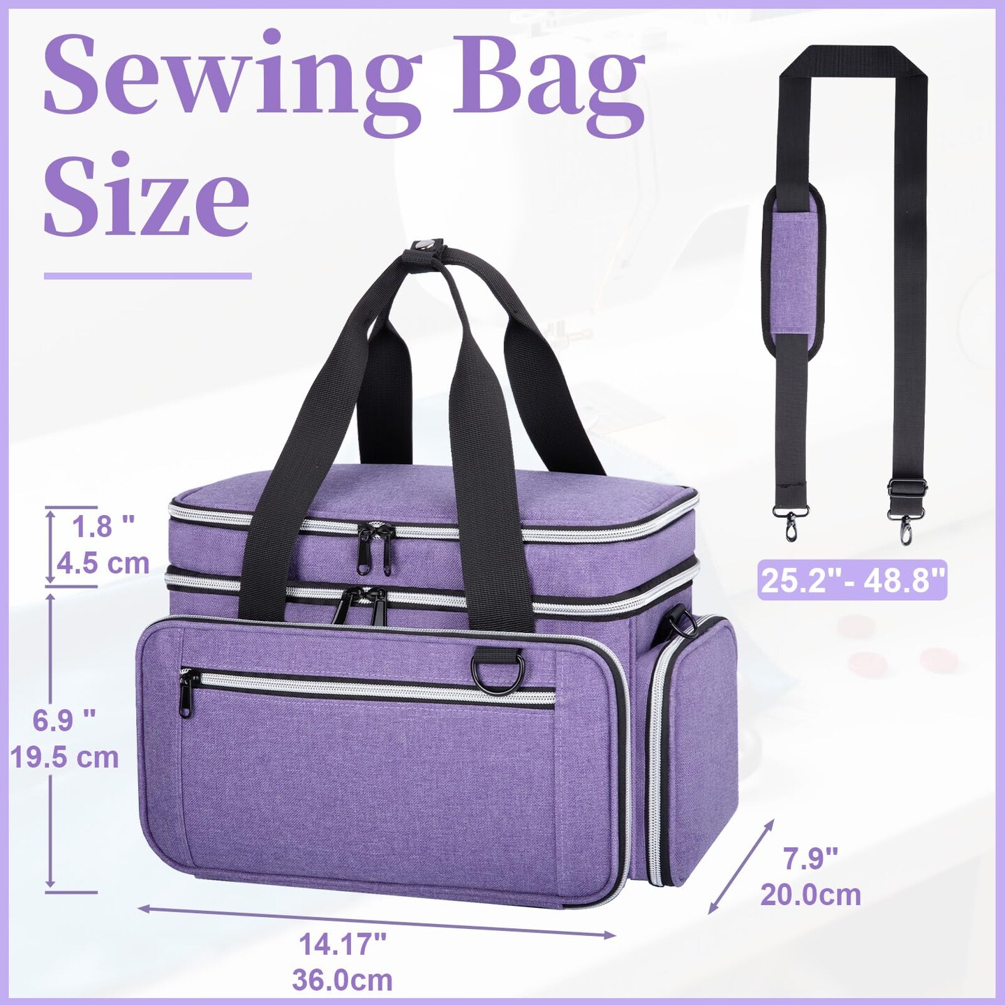 Large Sewing Supplies Organizer, Double Layer Sewing Storage Organizer with Two Detachable Dividers, Travel Sewing Bag Organizer with Shoulder Strap for Accessories, Purple, (Bag Only)