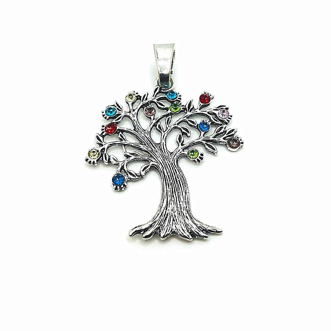 Large Silver Tree Pendant with Rhinestones, 69x50mm