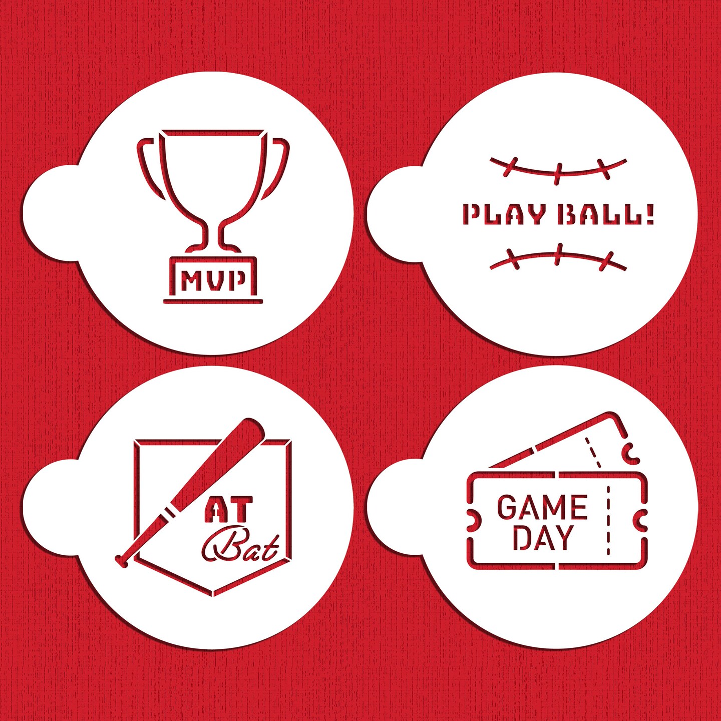Large Sports Themed Cookie Stencils | C1077 by Designer Stencils | Cookie Decorating Tools | Baking Stencils for Royal Icing, Airbrush, Dusting Powder | Reusable Plastic Food Grade Stencil for Cookies | Easy to Use & Clean Cookie Stencil