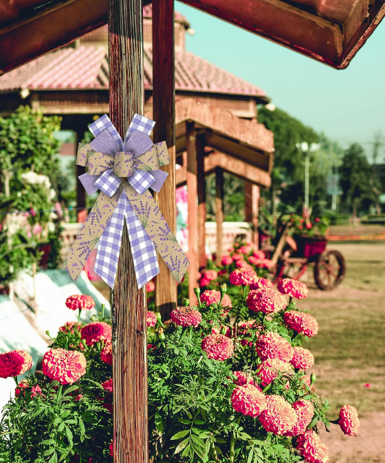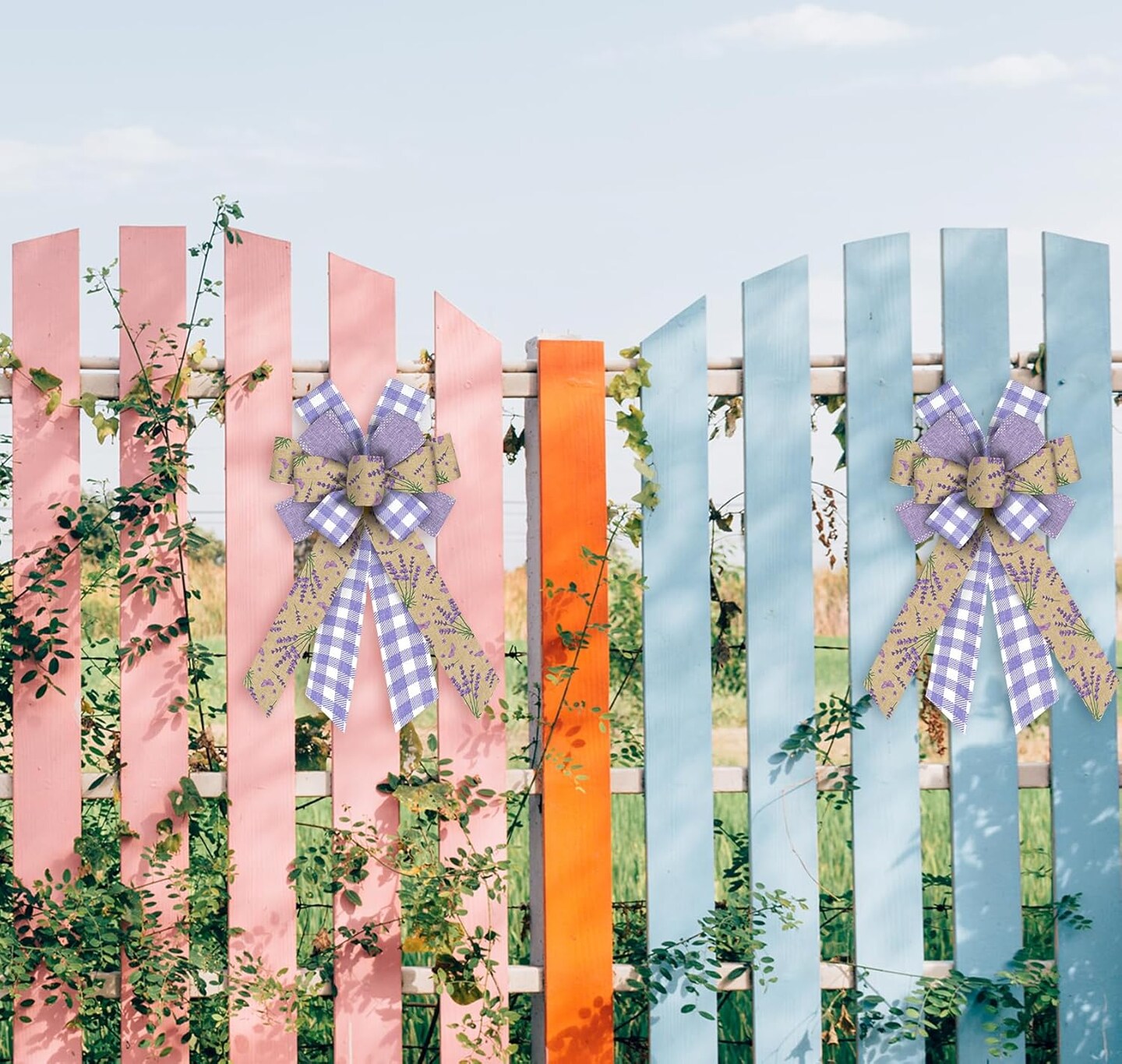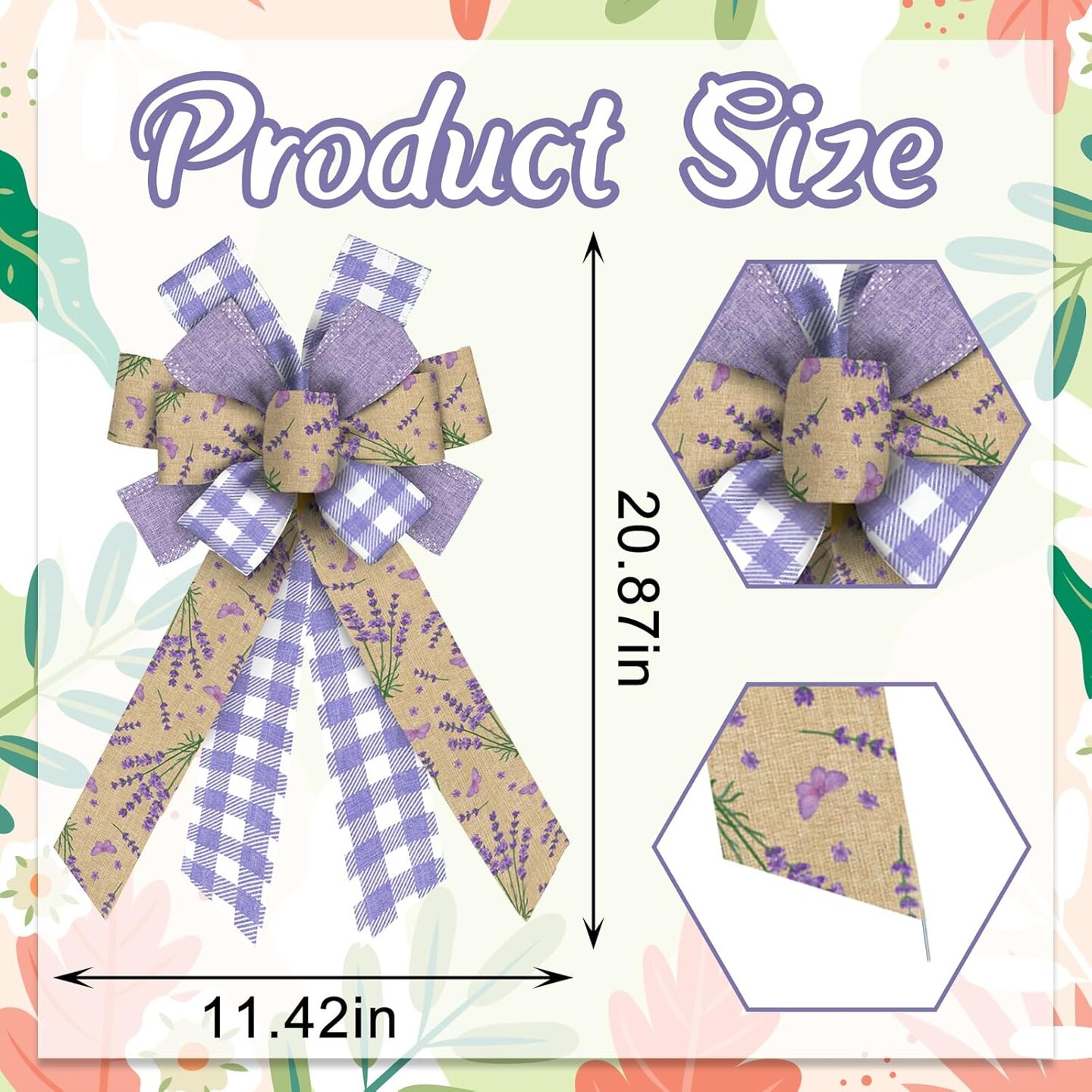 Large Spring Wreath Bows – Purple & White Buffalo Plaid with Lavender Floral Burlap for Front Door, Tree Toppers, and Indoor/Outdoor Spring Decorations