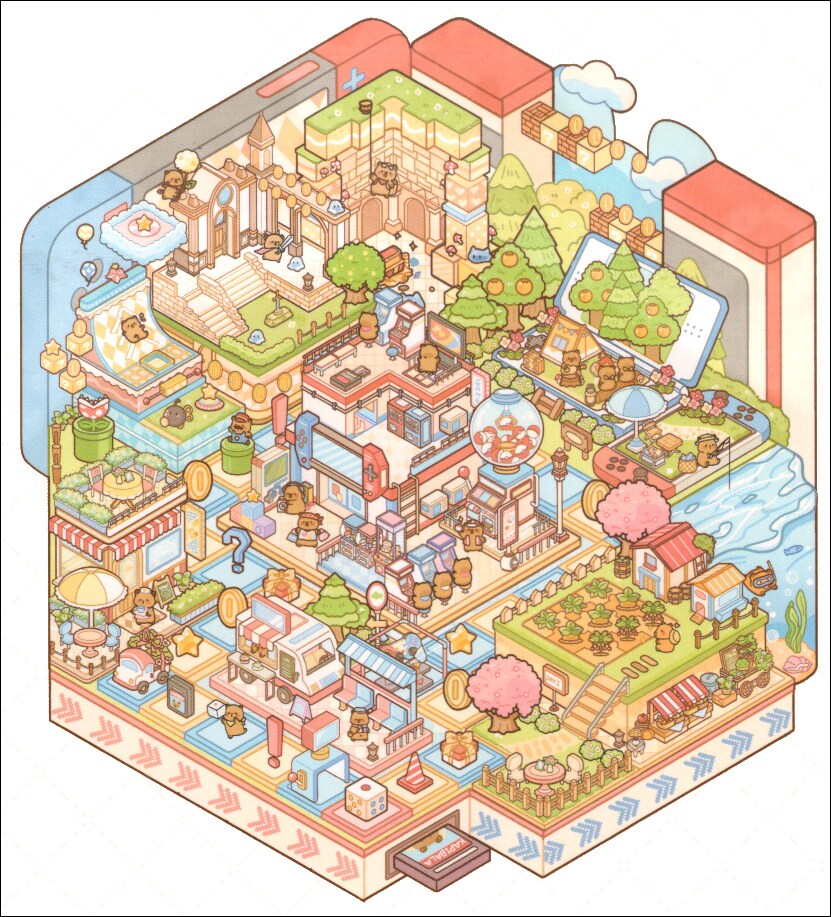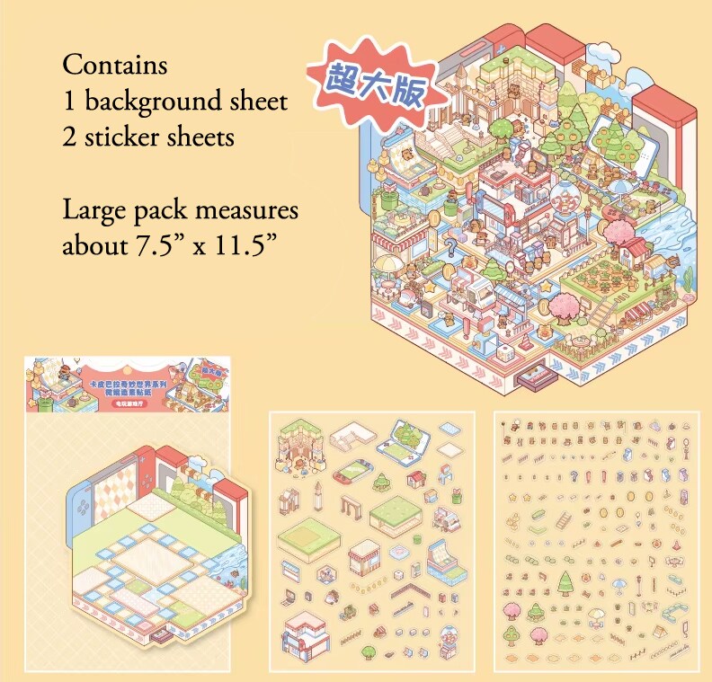 Large Sticker Scene, Isometric Kawaii City Landscape Stickers, Adorabilities