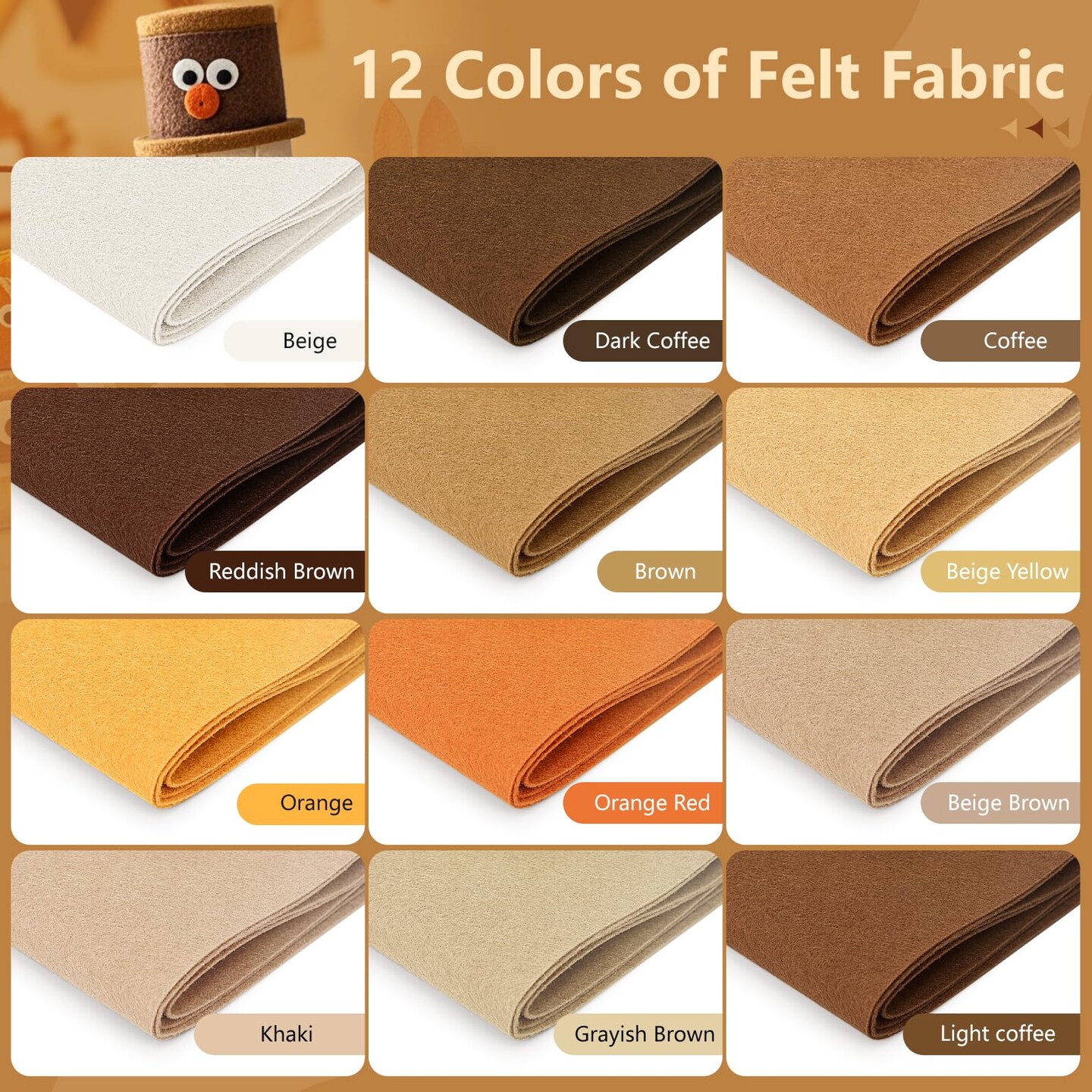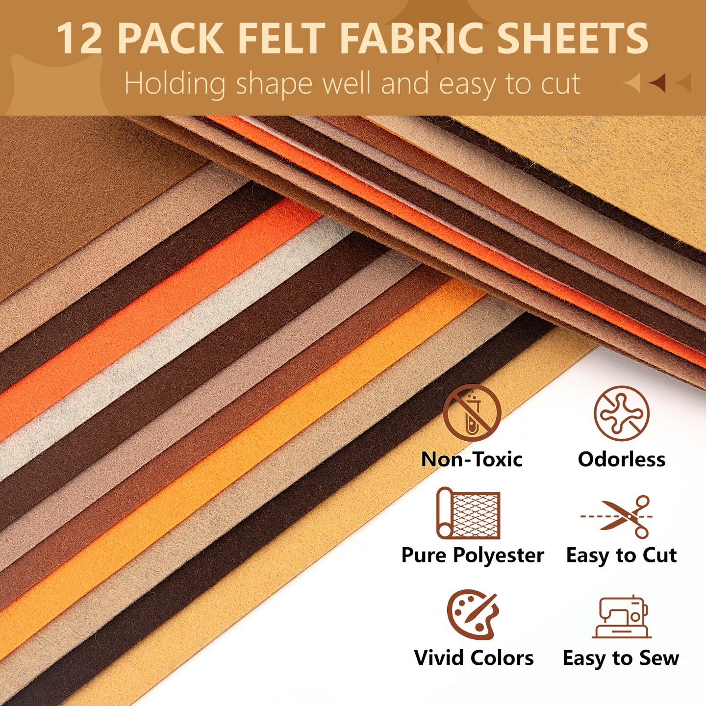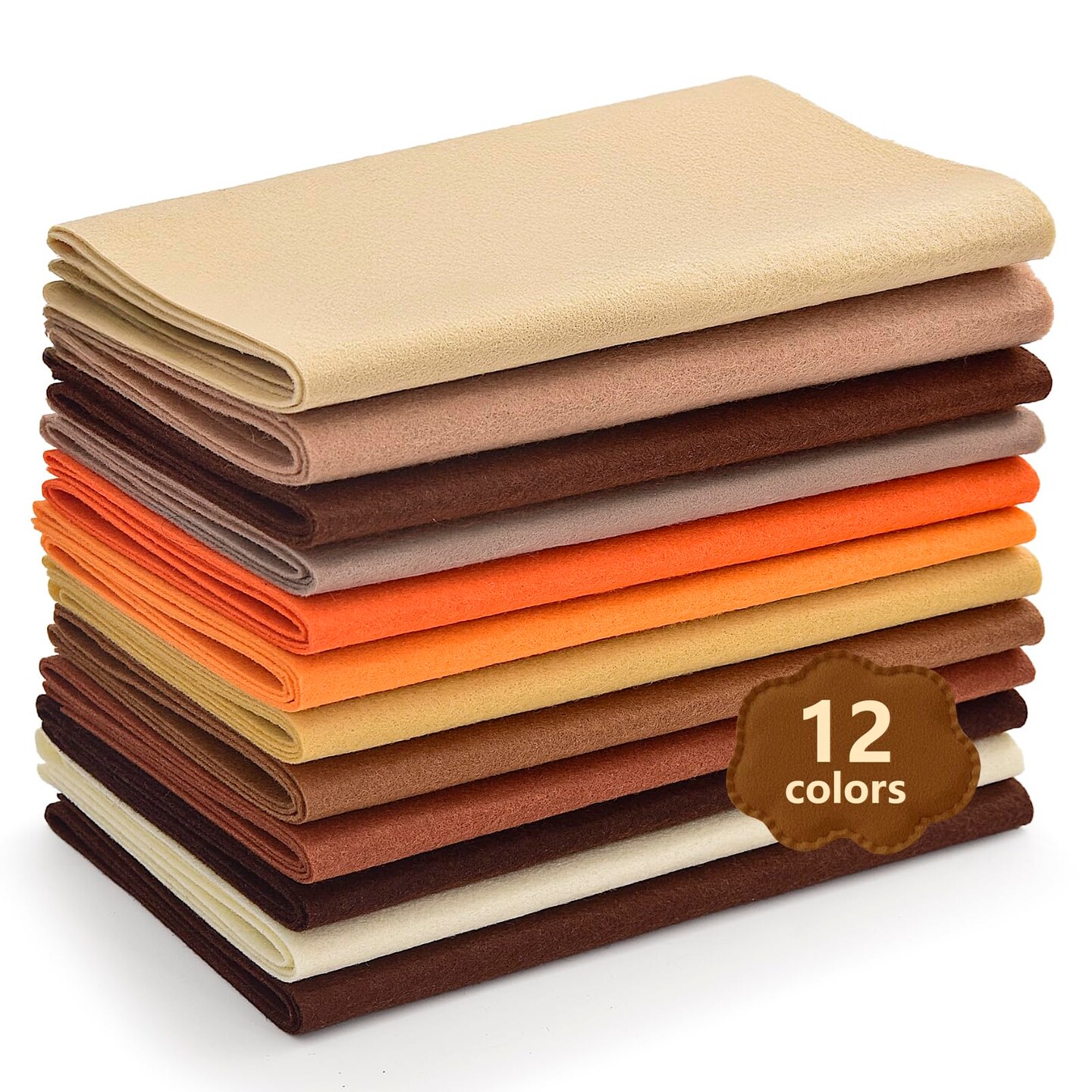 Large Stiff Felt Sheets Bundle Felt Fabric Sheets for Crafts 12 Rolls 8"x35" Soft Fall & Halloween 12 Assorted Colors Felt Pack for DIY Craft Sewing Squares Nonwoven Patchwork (Brown)