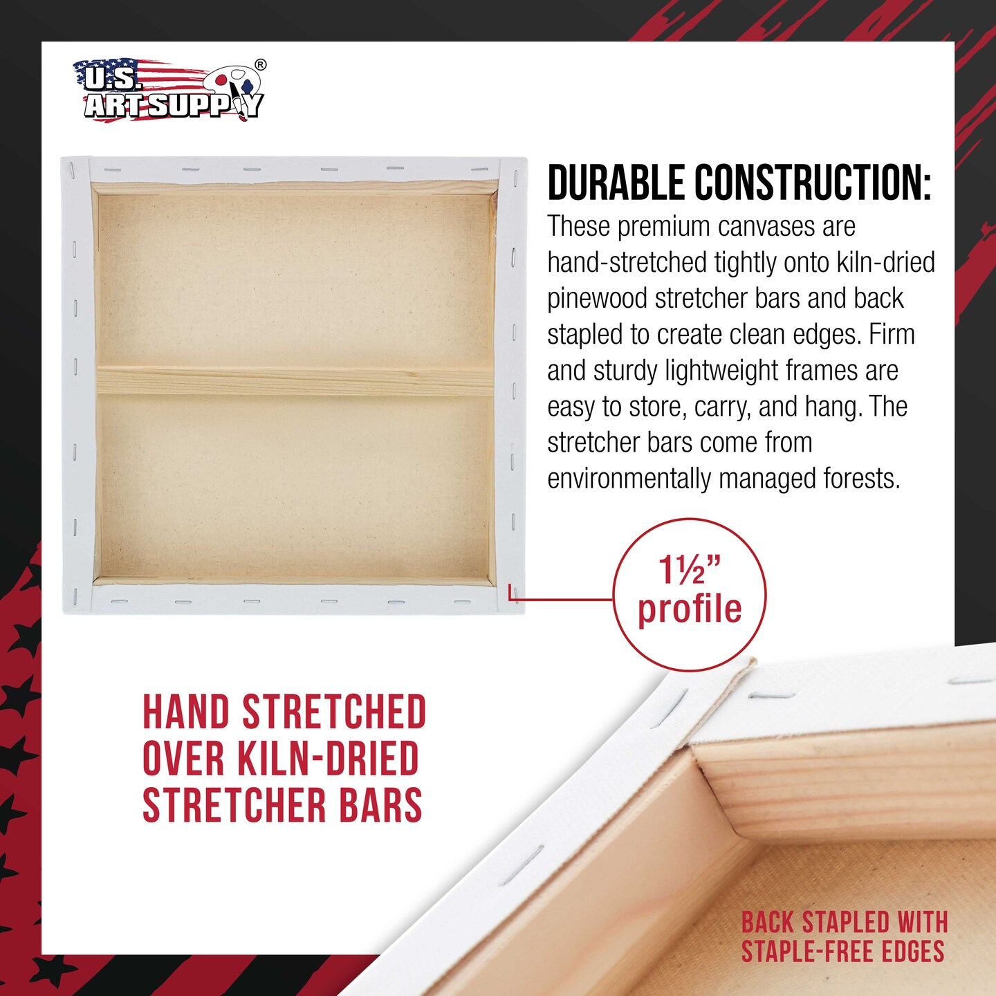 Large Stretched Canvas for Painting 20x20 inch Gallery Depth 1-1/2" Thick, 3-Pack - 12oz Acrylic Gesso Triple Primed, Professional Artist Quality, 100% Cotton - Oil, Pouring Paint