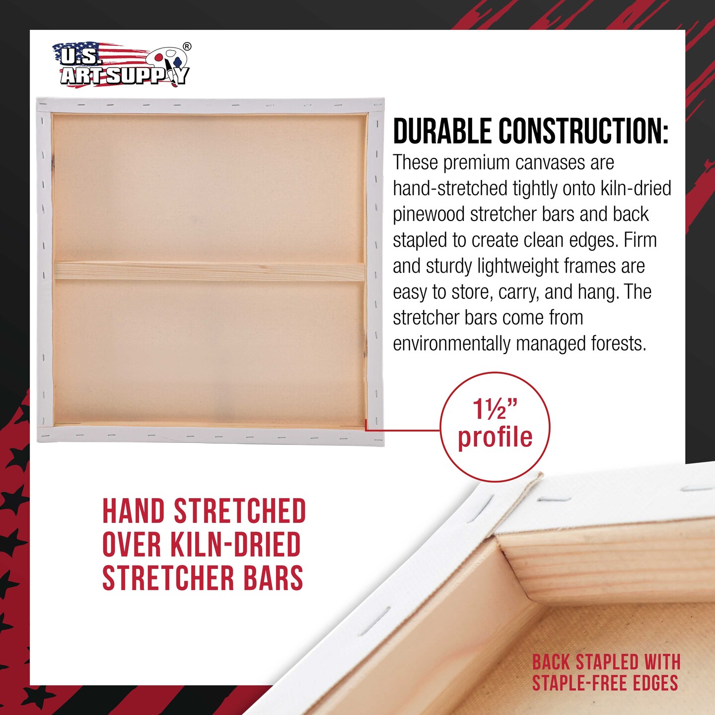 Large Stretched Canvas for Painting 24x24 inch Gallery Depth 1-1/2" Thick, 3-Pack - 12oz Acrylic Gesso Triple Primed, Professional Artist Quality, 100% Cotton - Oil, Pouring Paint
