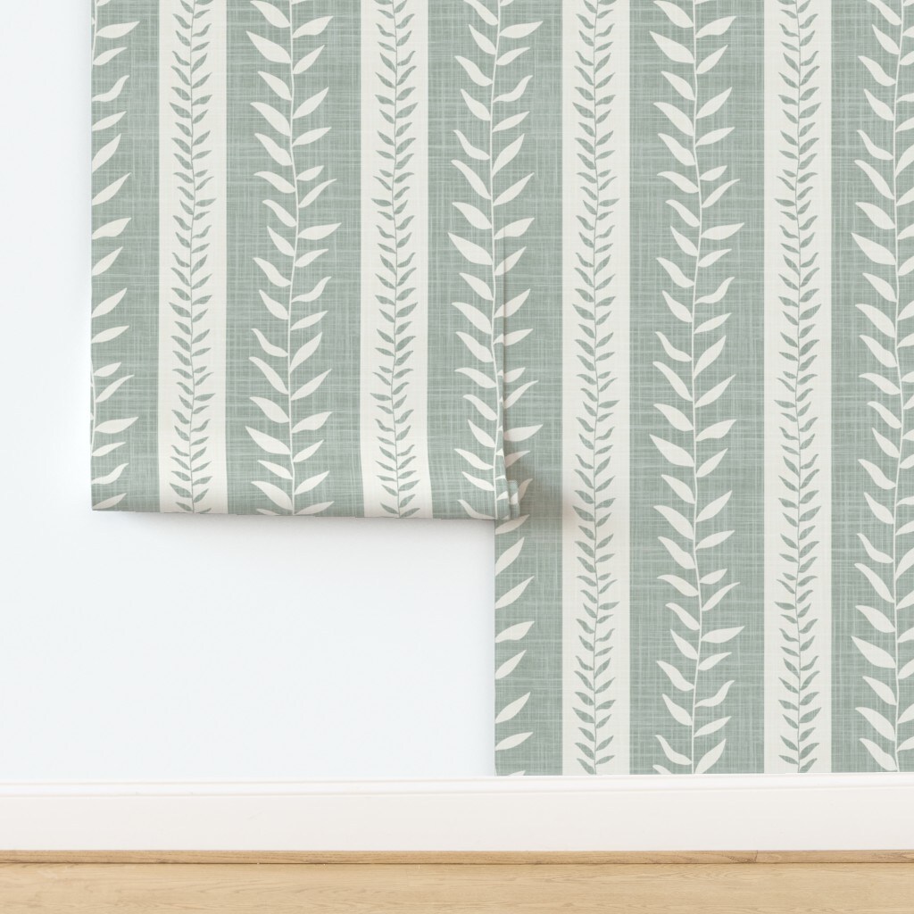 Large Stripe Green Stripes Tropical Sage Faux Linen Custom Removable Wallpaper by Spoonflower Peel & Stick Wallpaper 2FT Wide