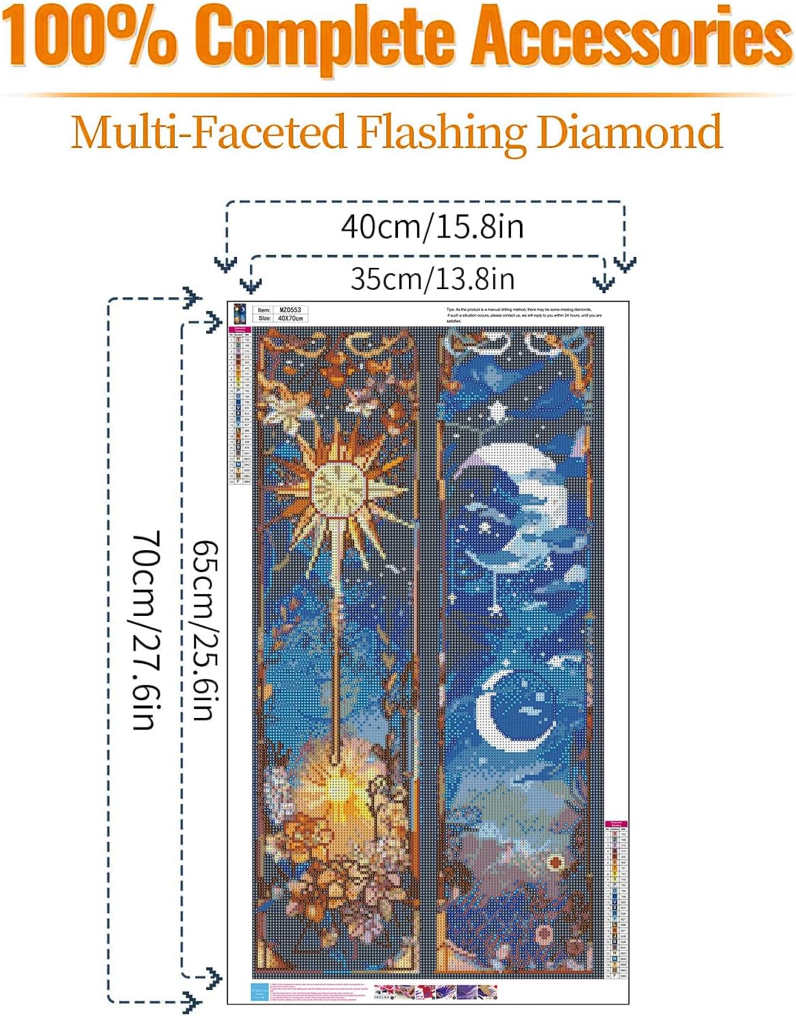 Large Sun & Moon Diamond Art Kit for Adults – 5D Round Full Drill Moon Gem Painting DIY Craft, 16x28 Inch Diamond Painting Kit