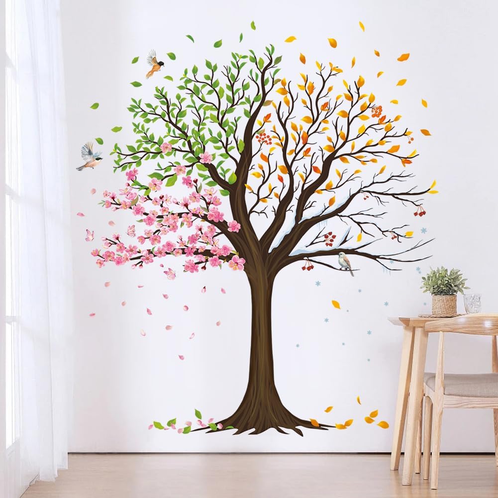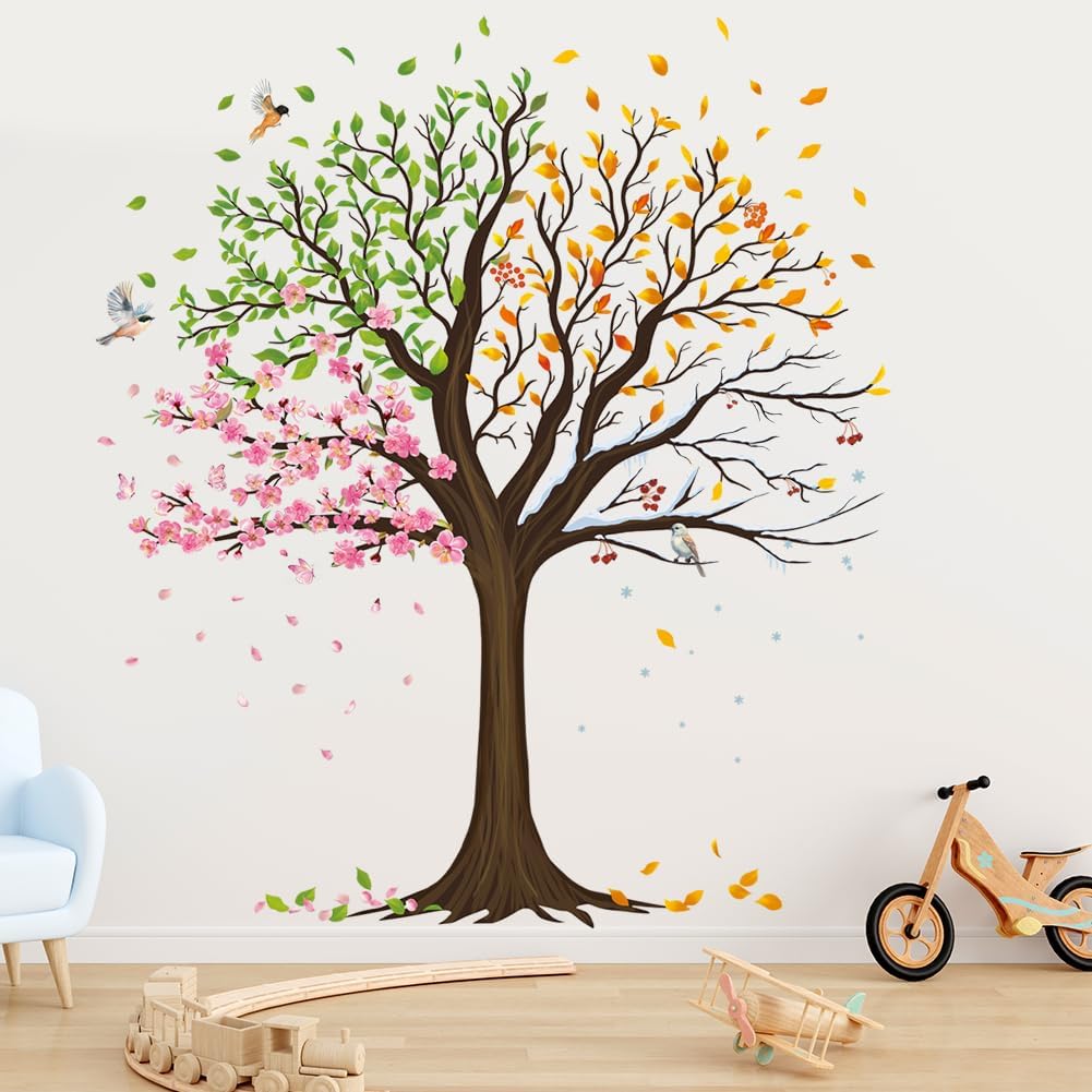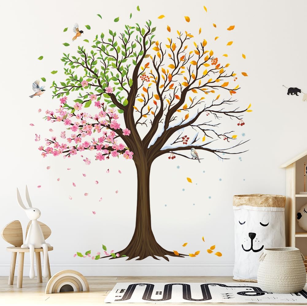 Large Tree Wall Decals Colorful Leaves Flower Wall Stickers