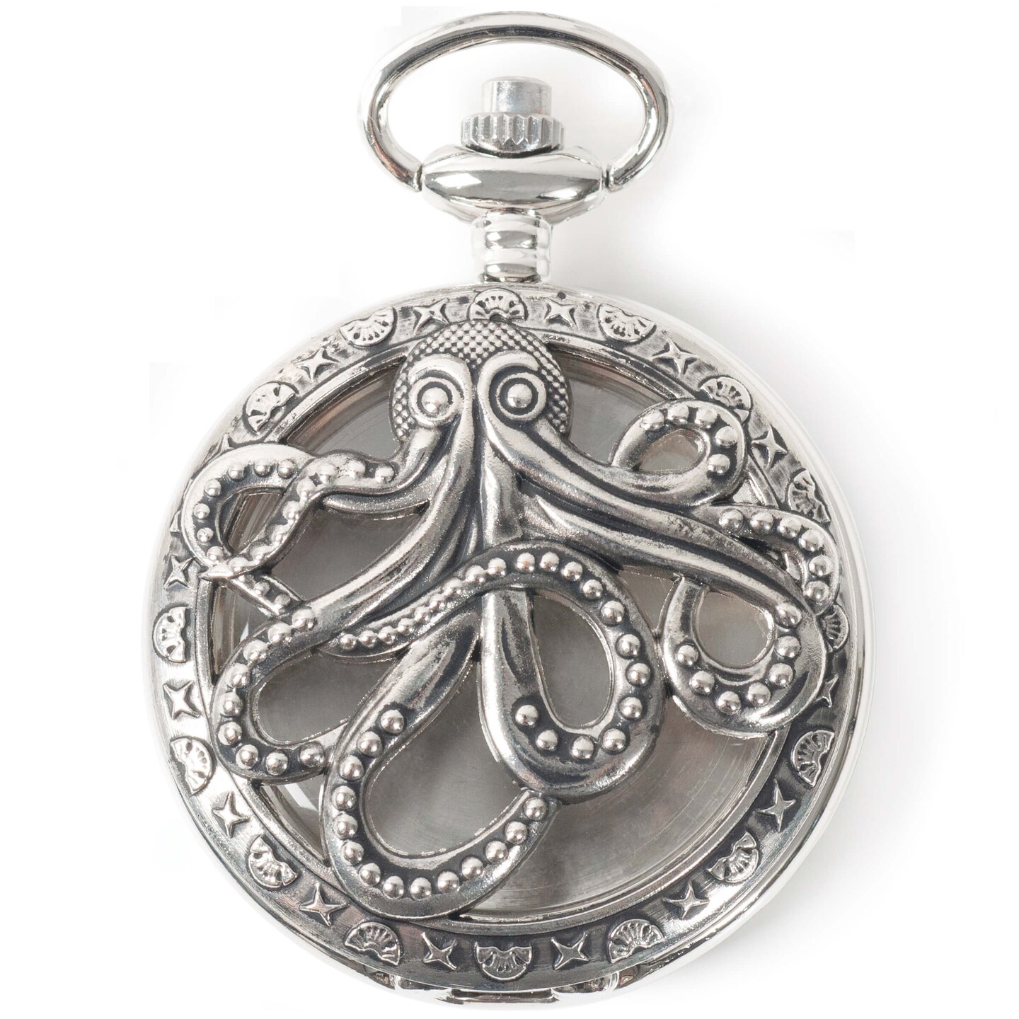 Large Watch Case - Octopus, Imitation Silver Antiqued