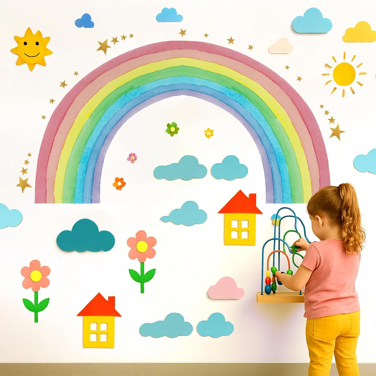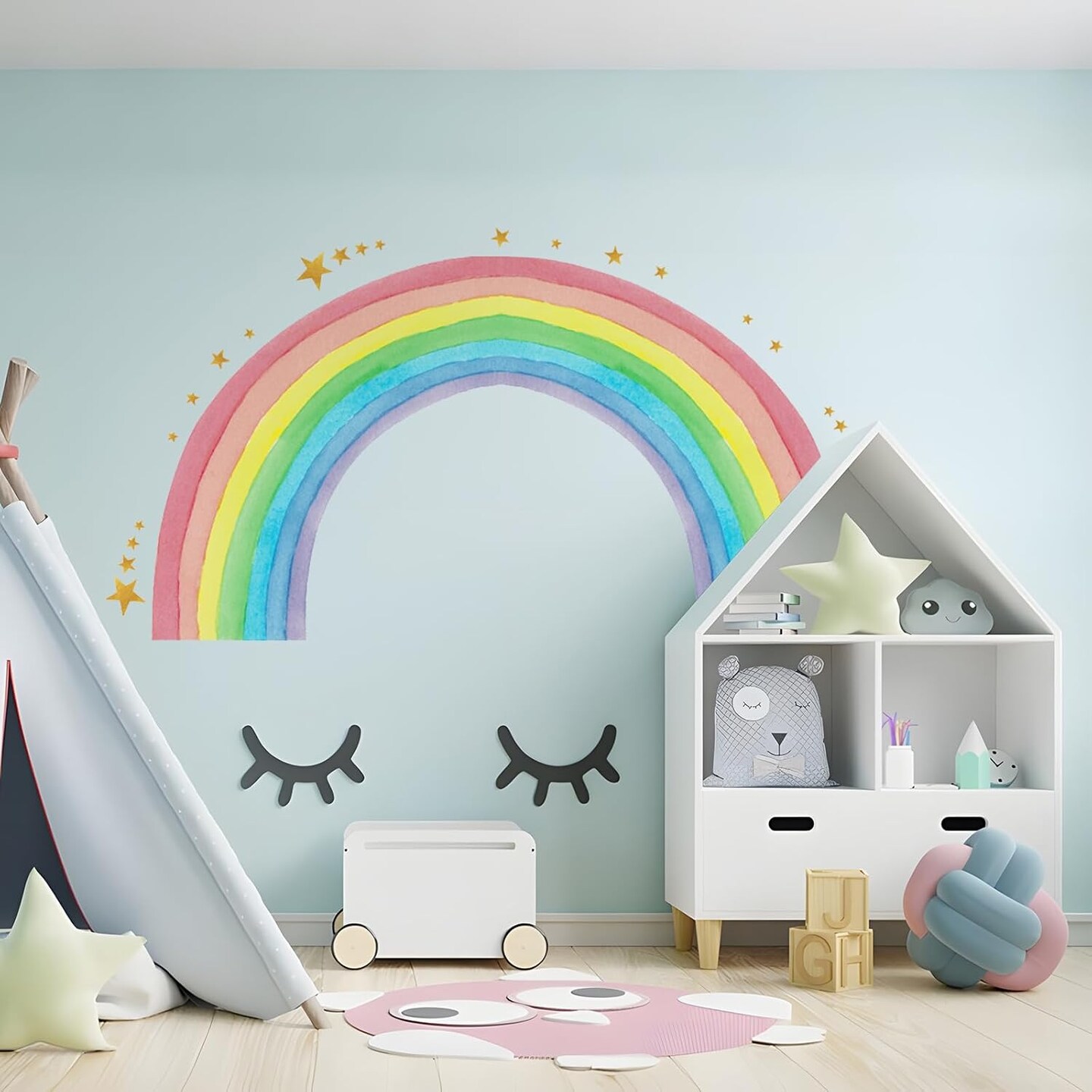 Large Watercolor Rainbow Wall Decals, Colorful Nursery Wall Decor (Multicolor)