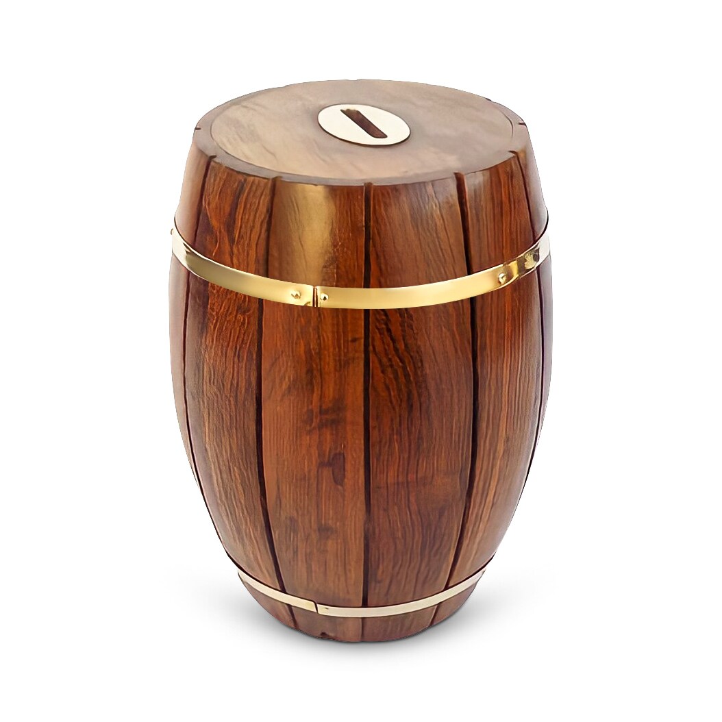 Large Wine Barrel Shaped Brown Wooden Decorative Coin Bank Money Saving Box
