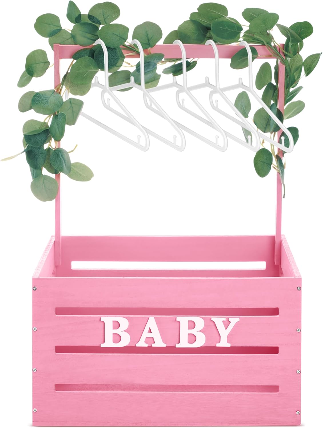 Large Wooden Baby Shower Crate Closet with Handle and Garland, 17.7inch Baby Shower Basket for Newborn Girl Boys Gifts Pregnancy New Parent(Pink)