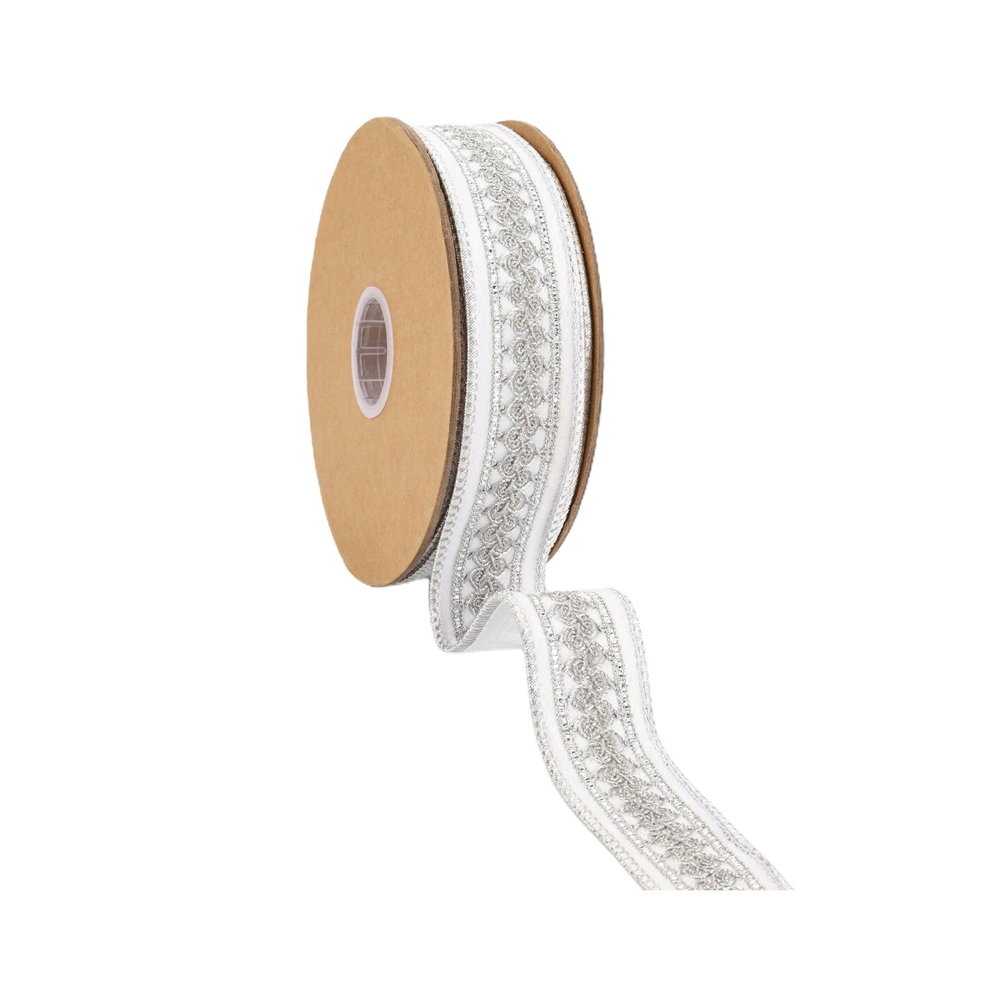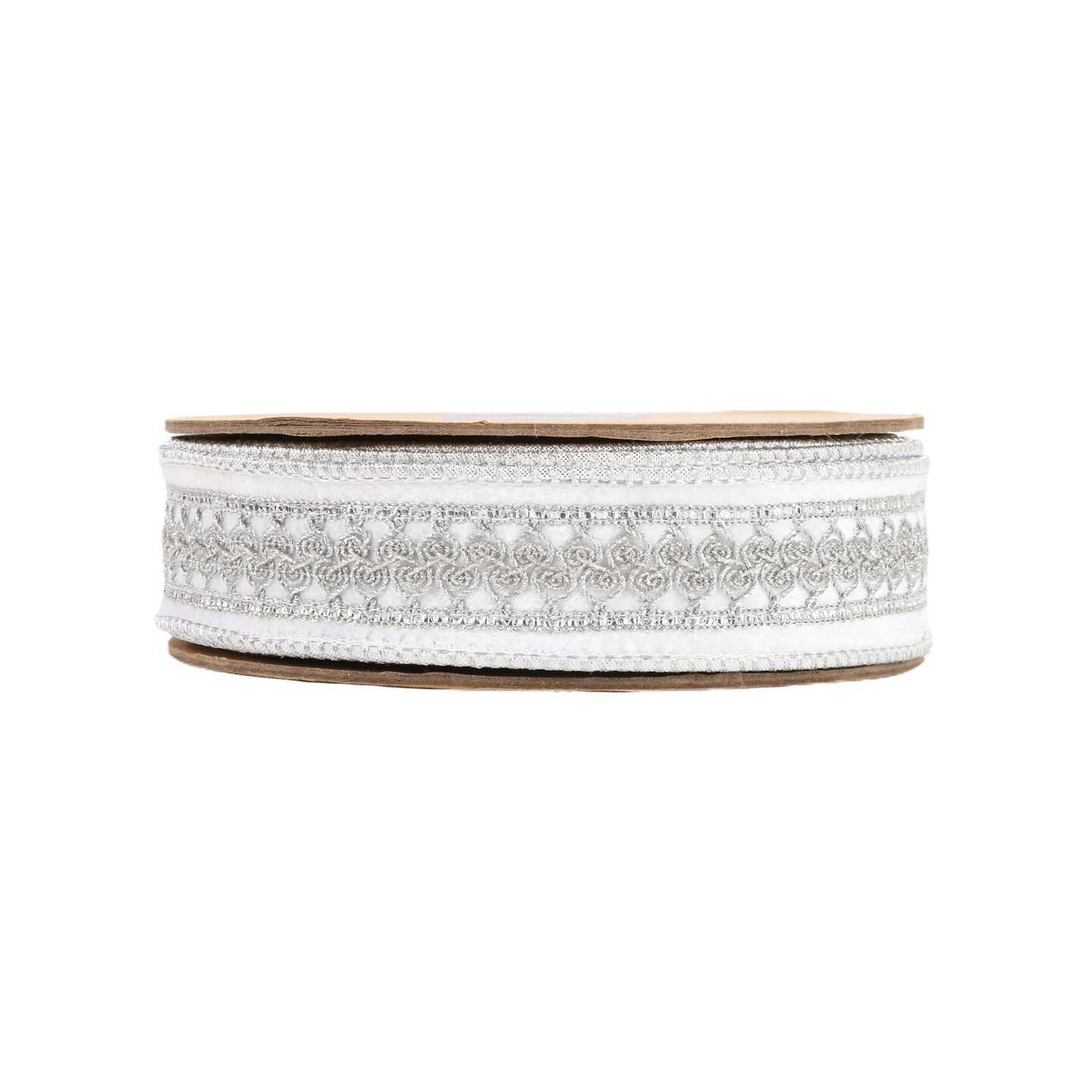 LaRibbons 1 1/2" Double-Fused Wired Velvet Ribbon w/ Metallic Trim | White/Silver | 10 Yard Roll