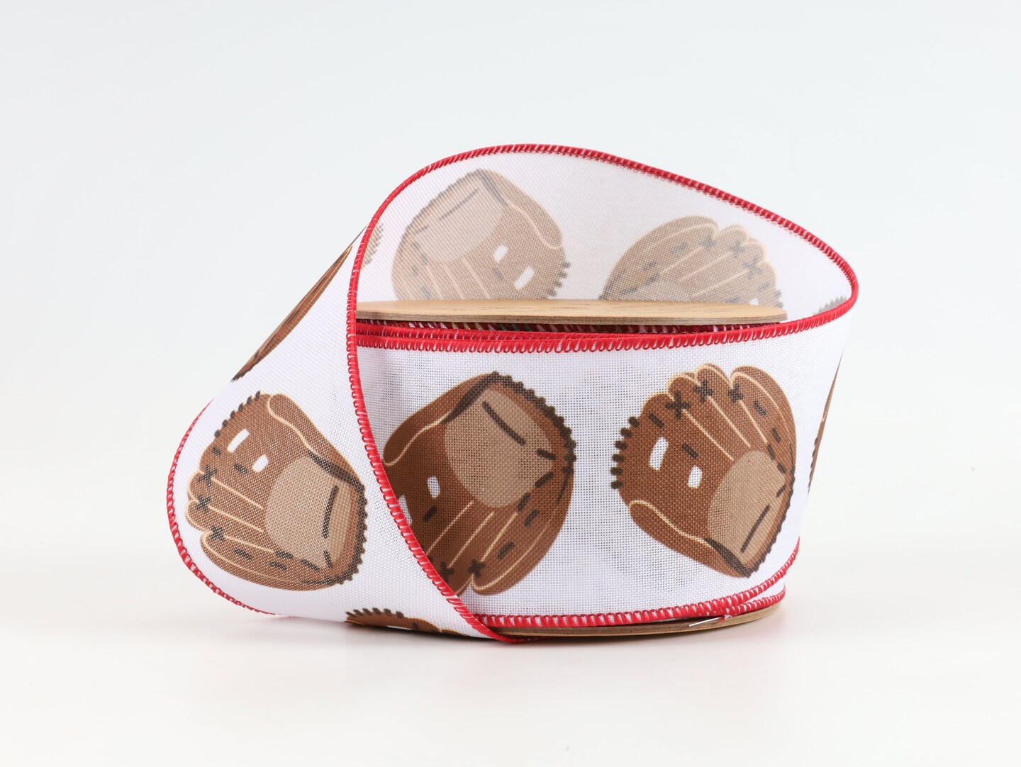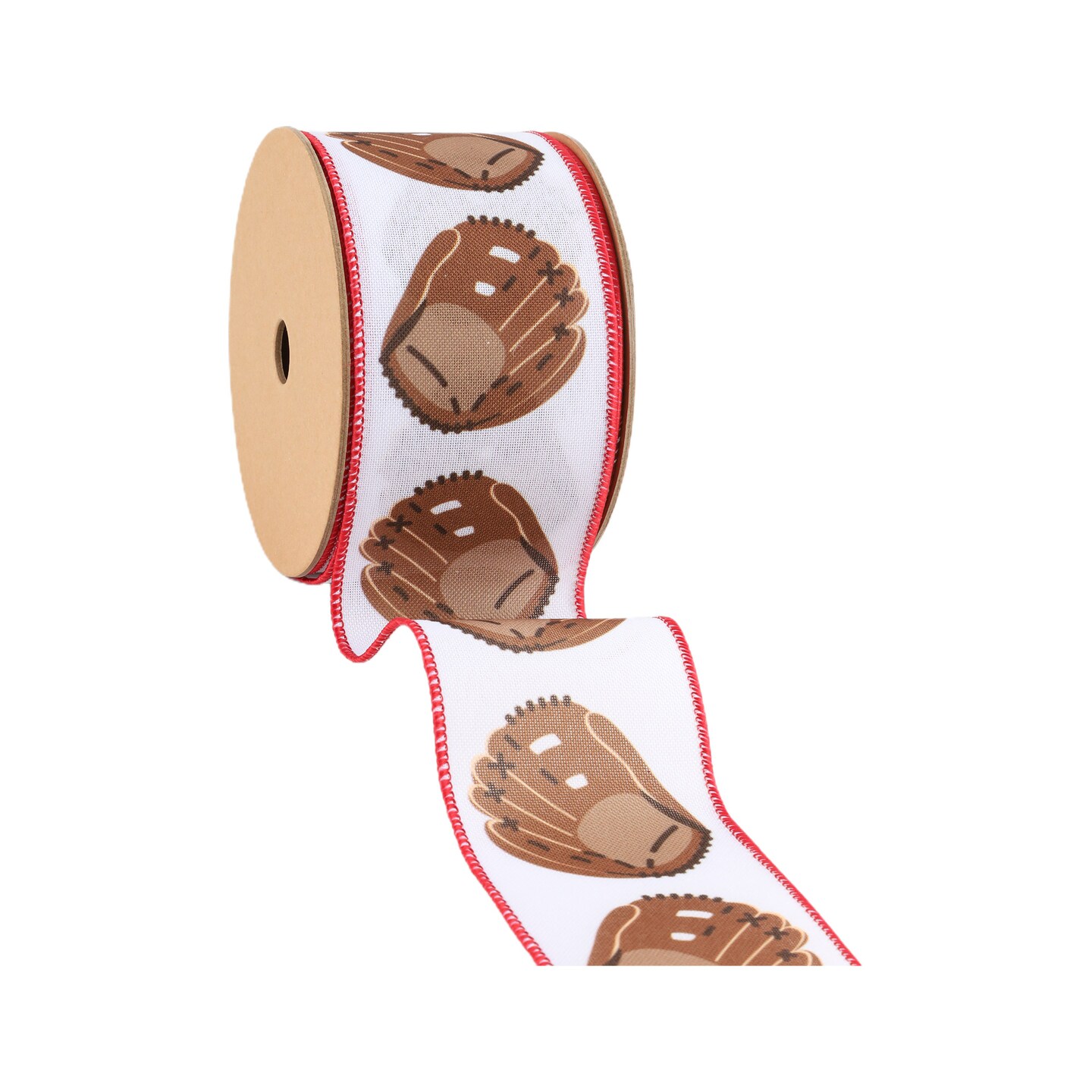 LaRibbons 2 1/2" Faux Linen Heat Transfer Wired Ribbon | Baseball Glove | 10 Yard Roll