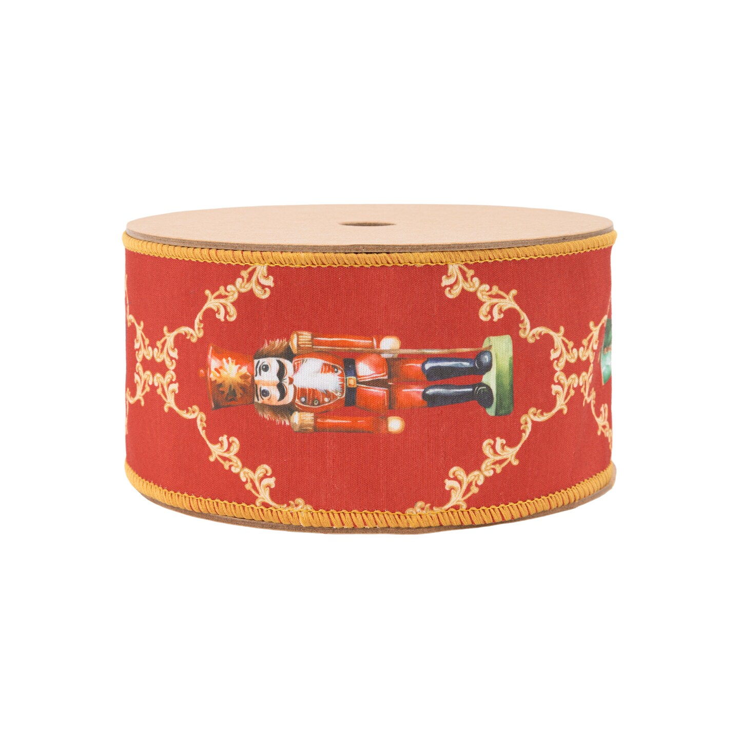 LaRibbons 2 1/2" Wired Reversible Dupioni | Nutcracker with Diamond Pattern on Red | 10 Yard Roll