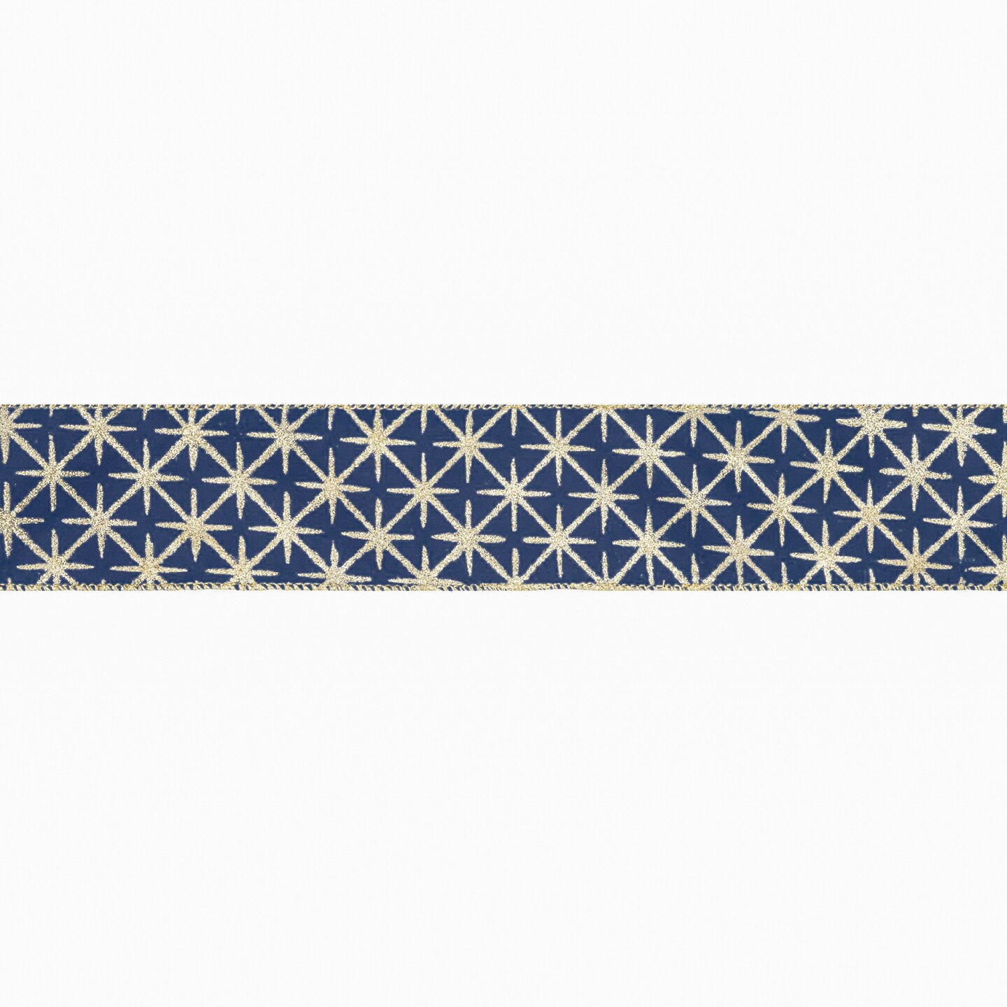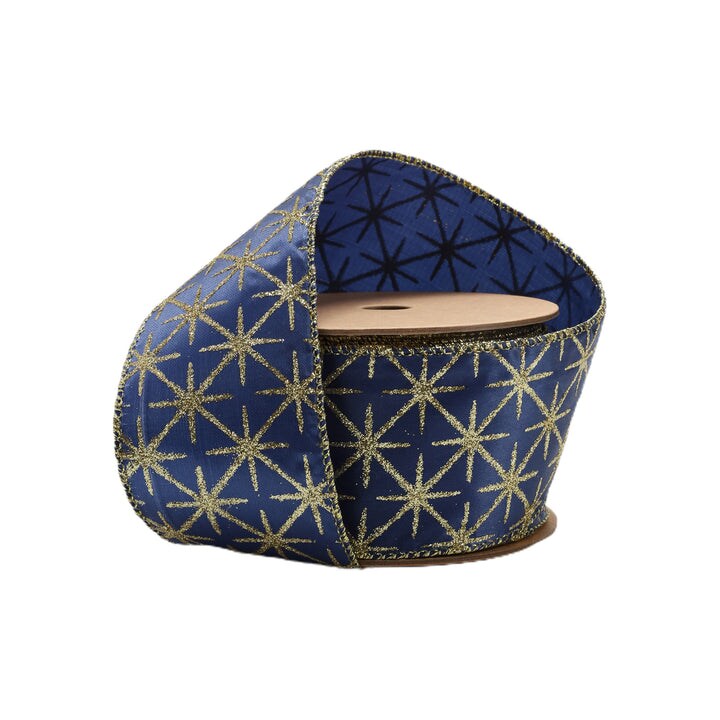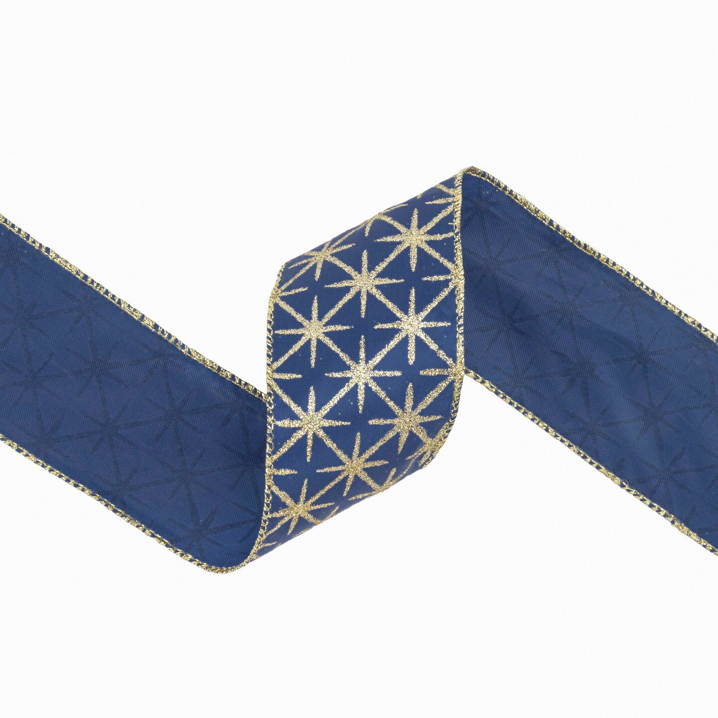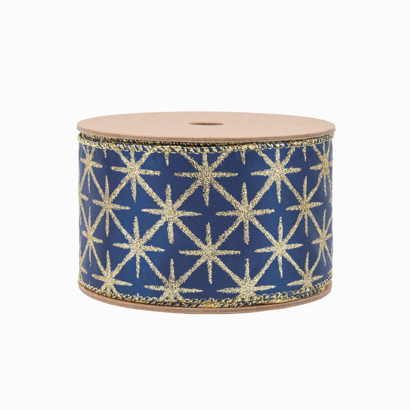 LaRibbons 2 1/2" Wired Ribbon | Blue Satin with Gold Stars | 10 Yard Roll