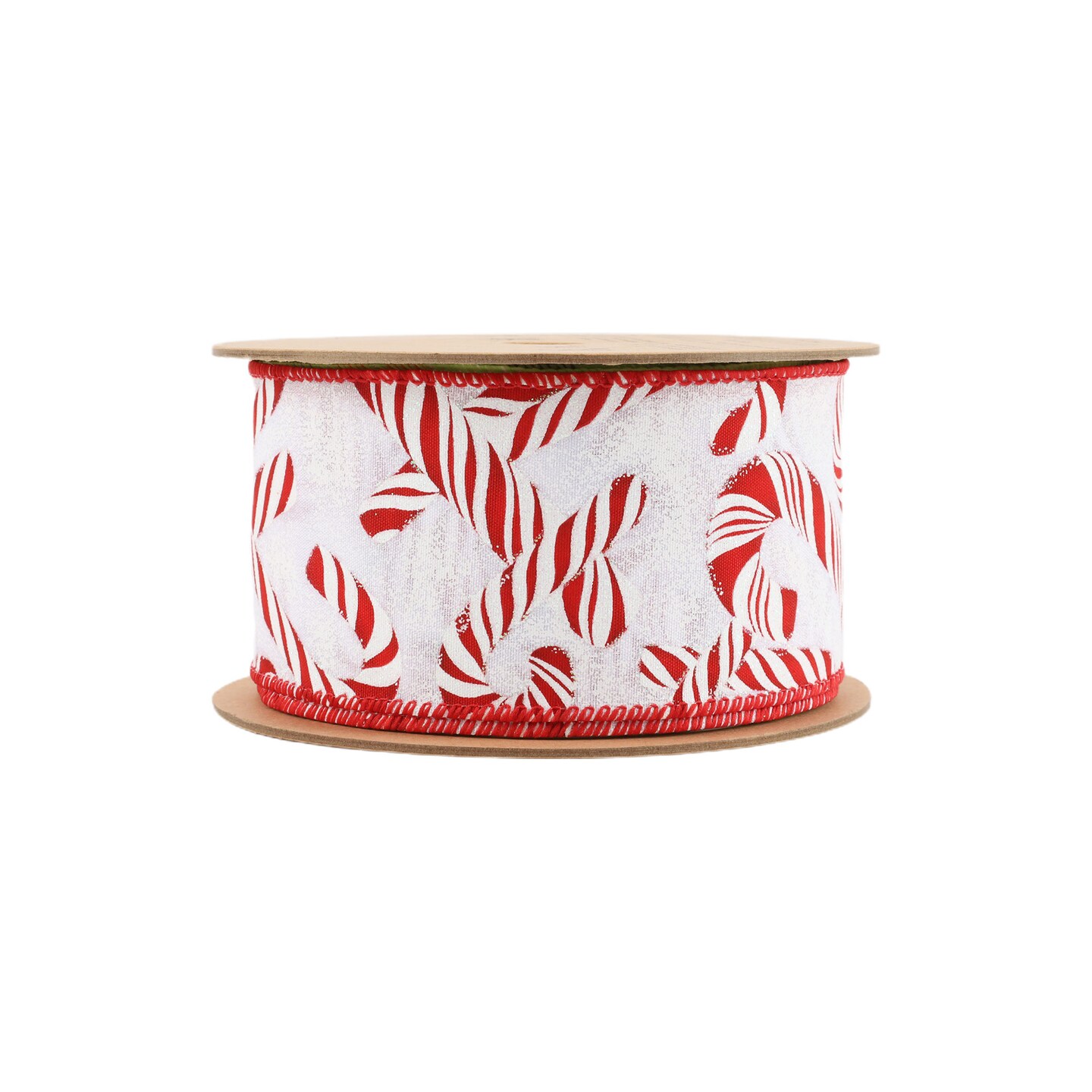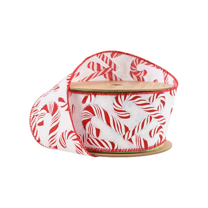 LaRibbons 2 1/2" Wired Ribbon | Candy Cane on White | 10 Yard Roll