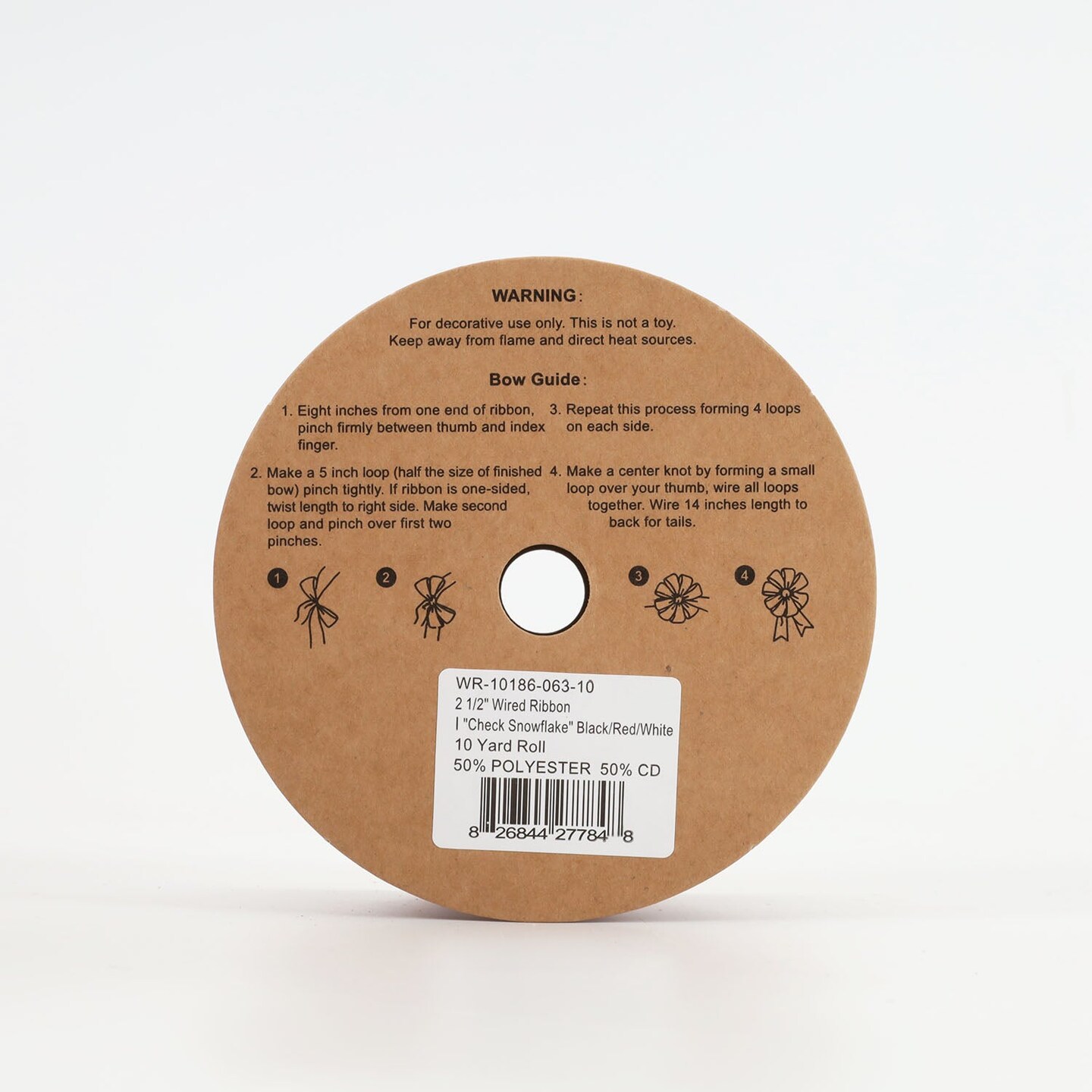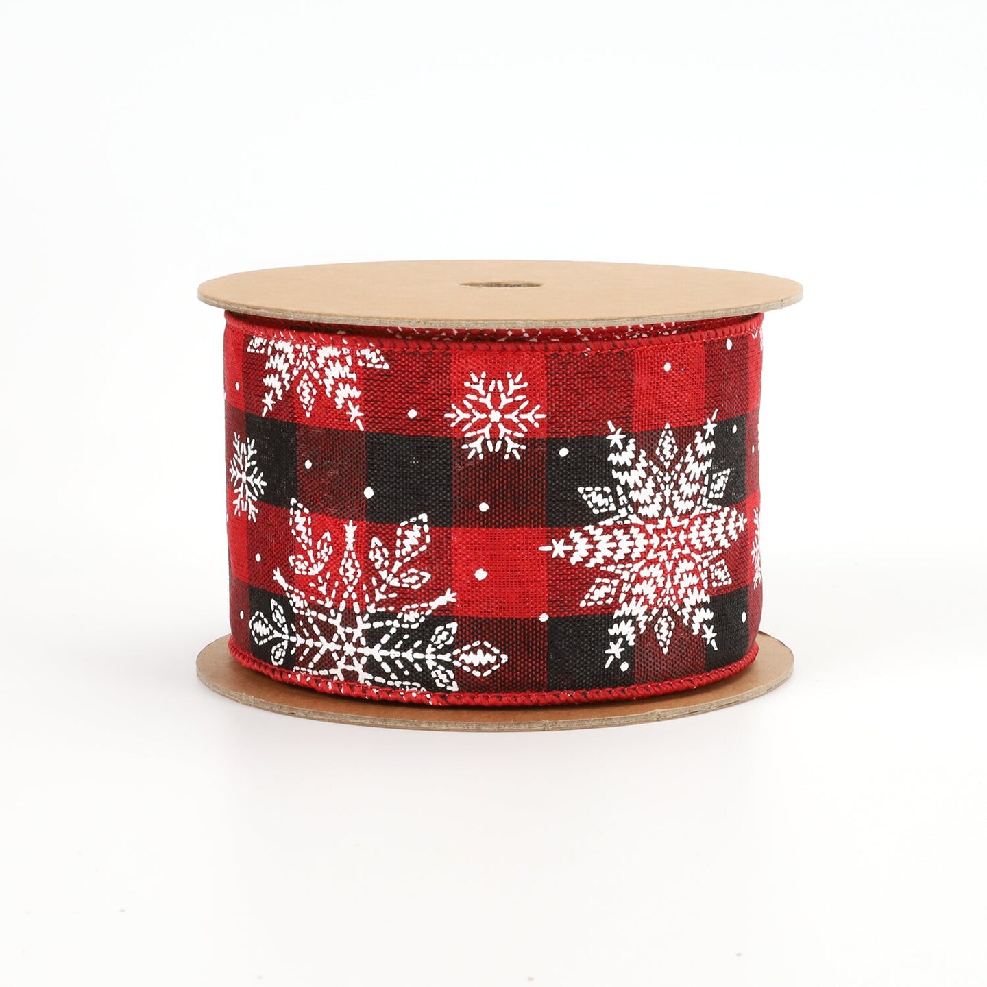 LaRibbons 2 1/2" Wired Ribbon | "Check Snowflake" Black/Red/White | 10 Yard Roll