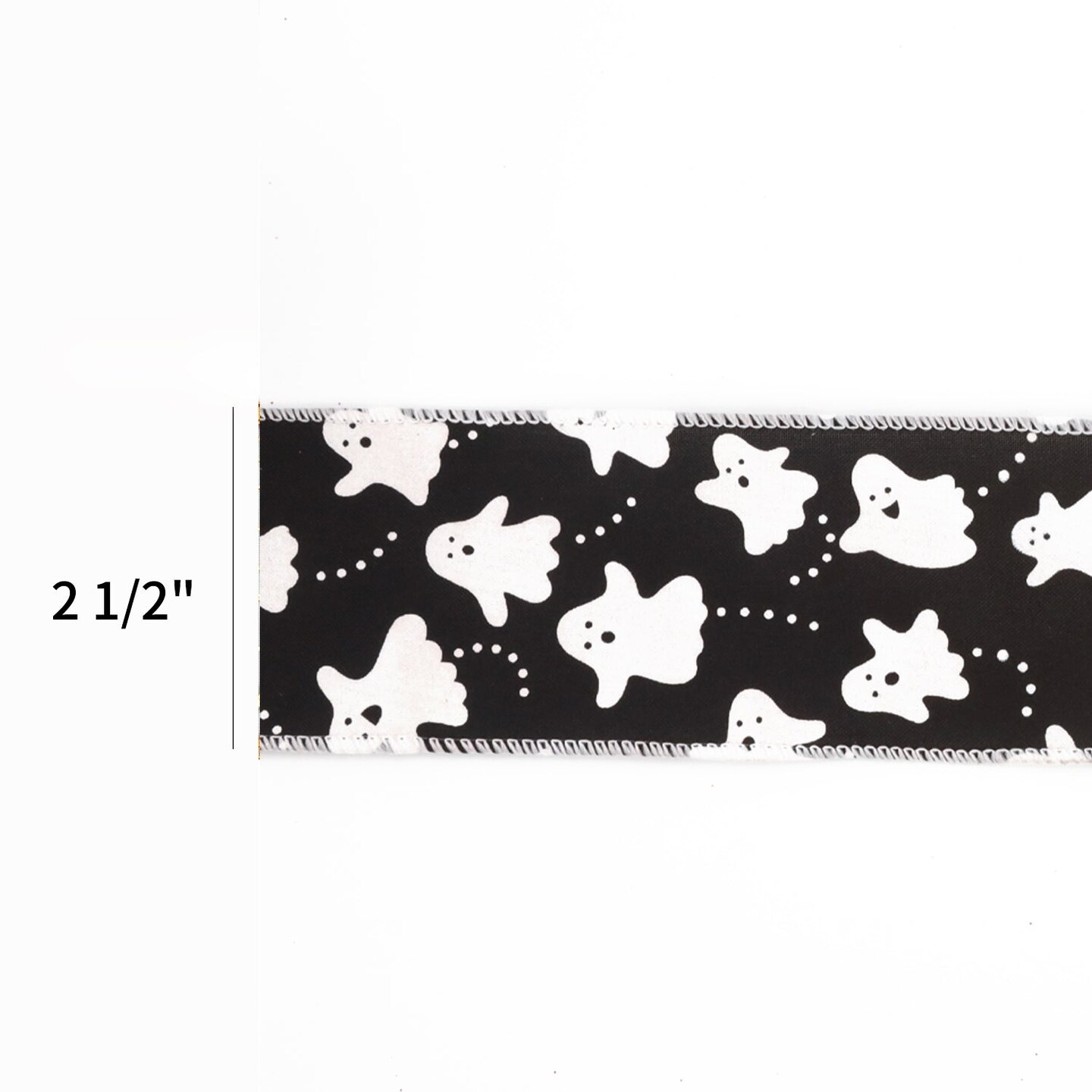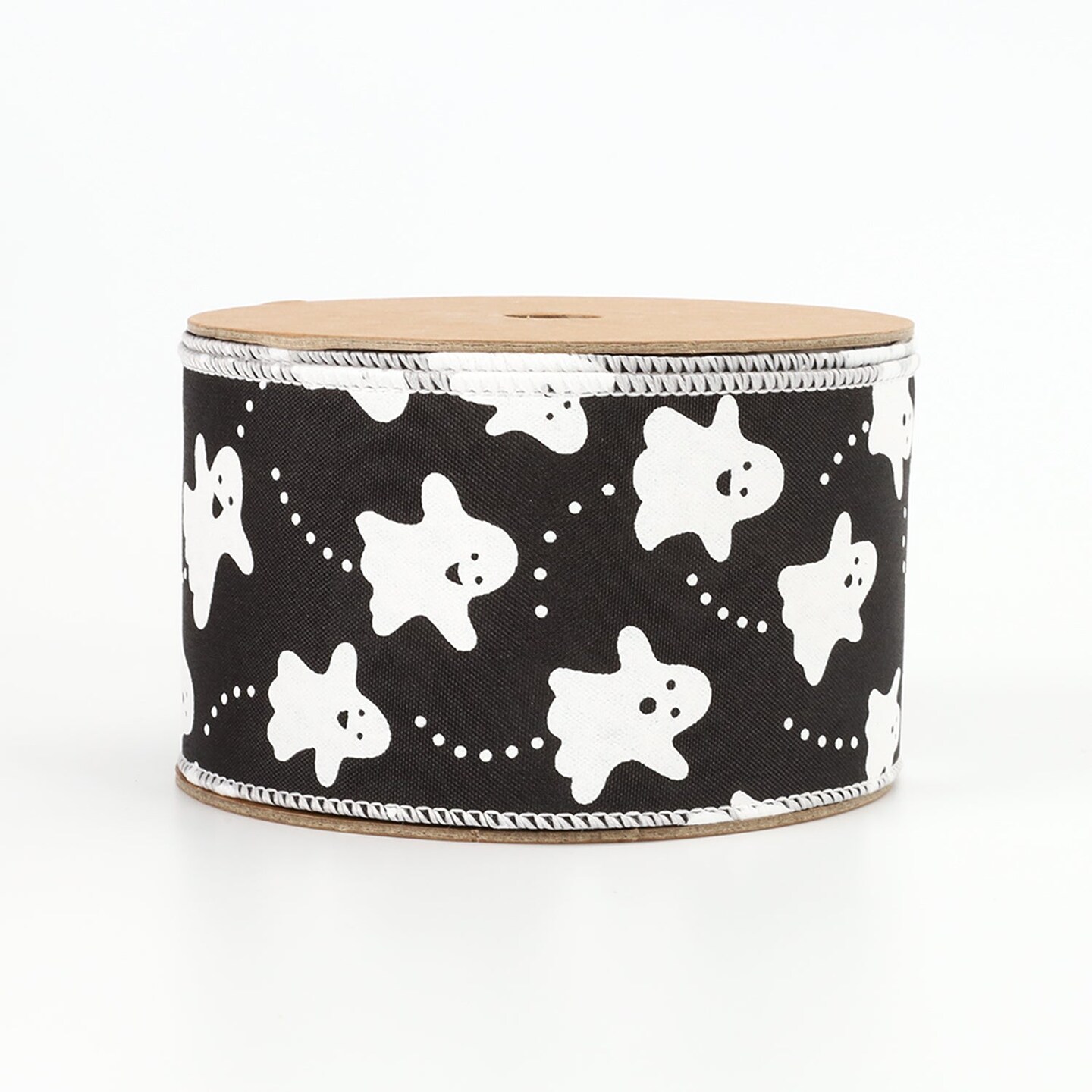 LaRibbons 2 1/2" Wired Ribbon | "Ghosts" Black/White | 10 Yard Roll