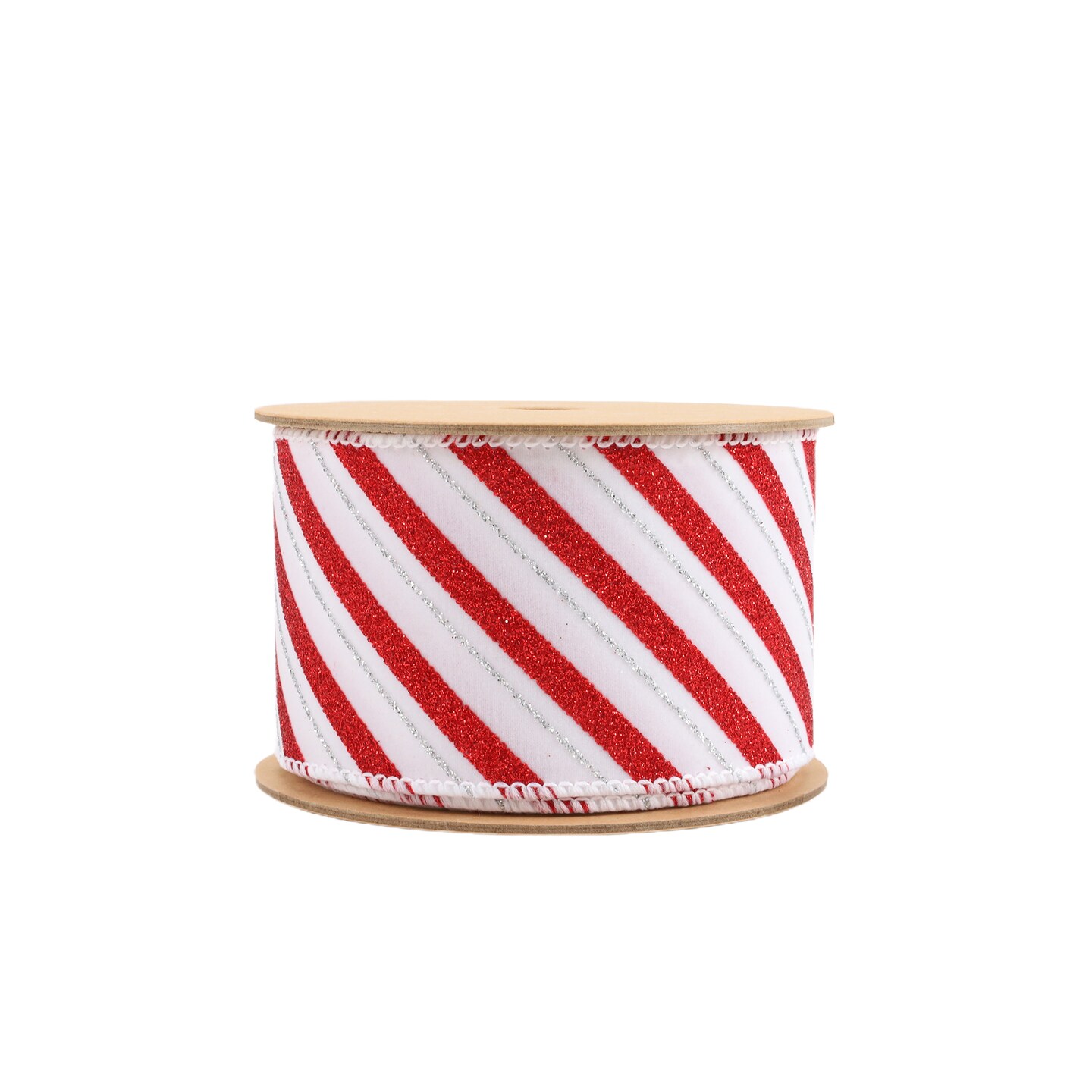 LaRibbons 2 1/2" Wired Ribbon | Red/White Stripe | 10 Yard Roll