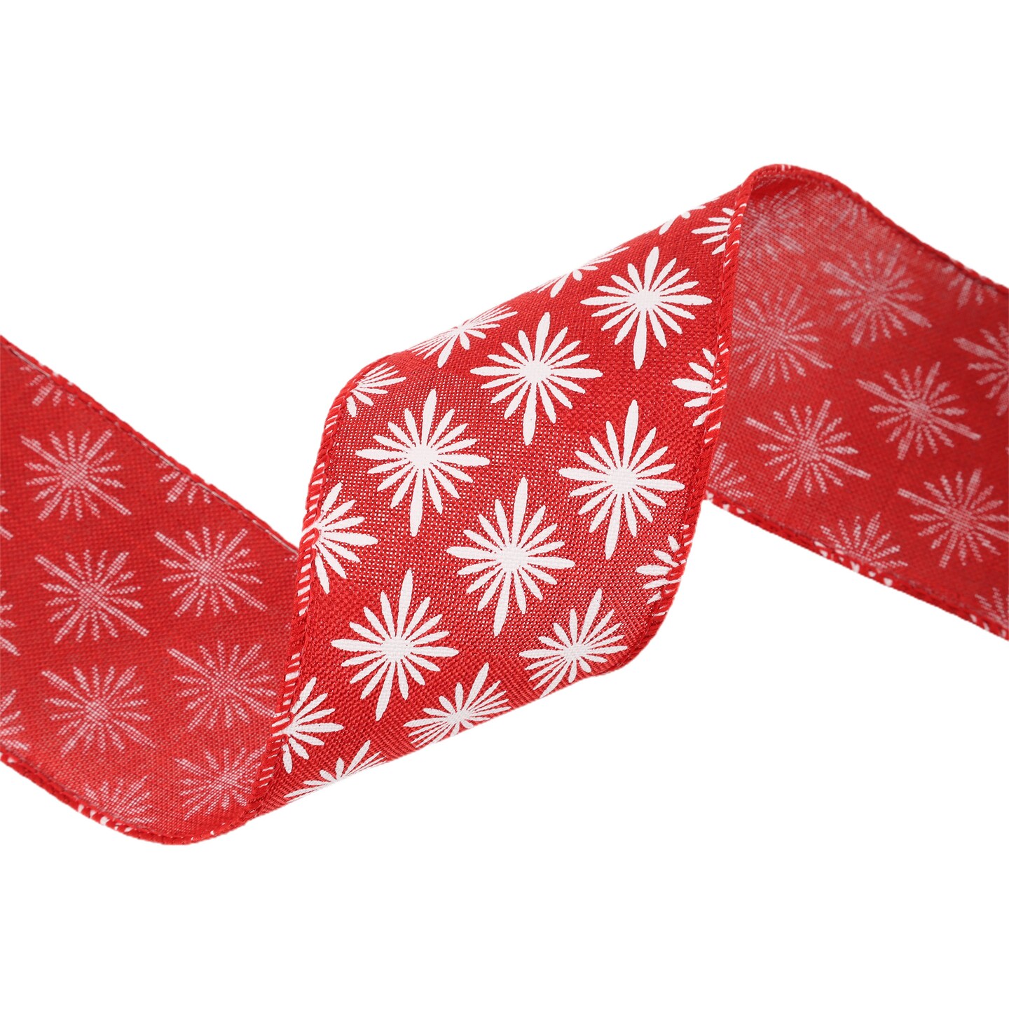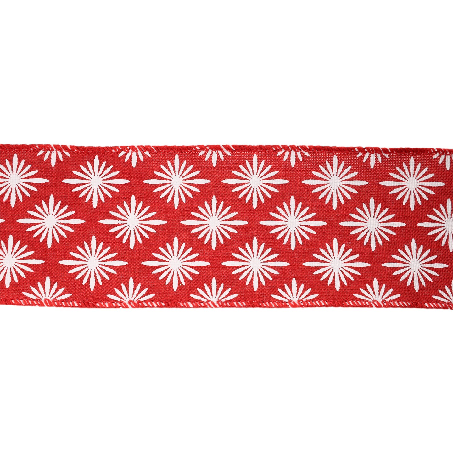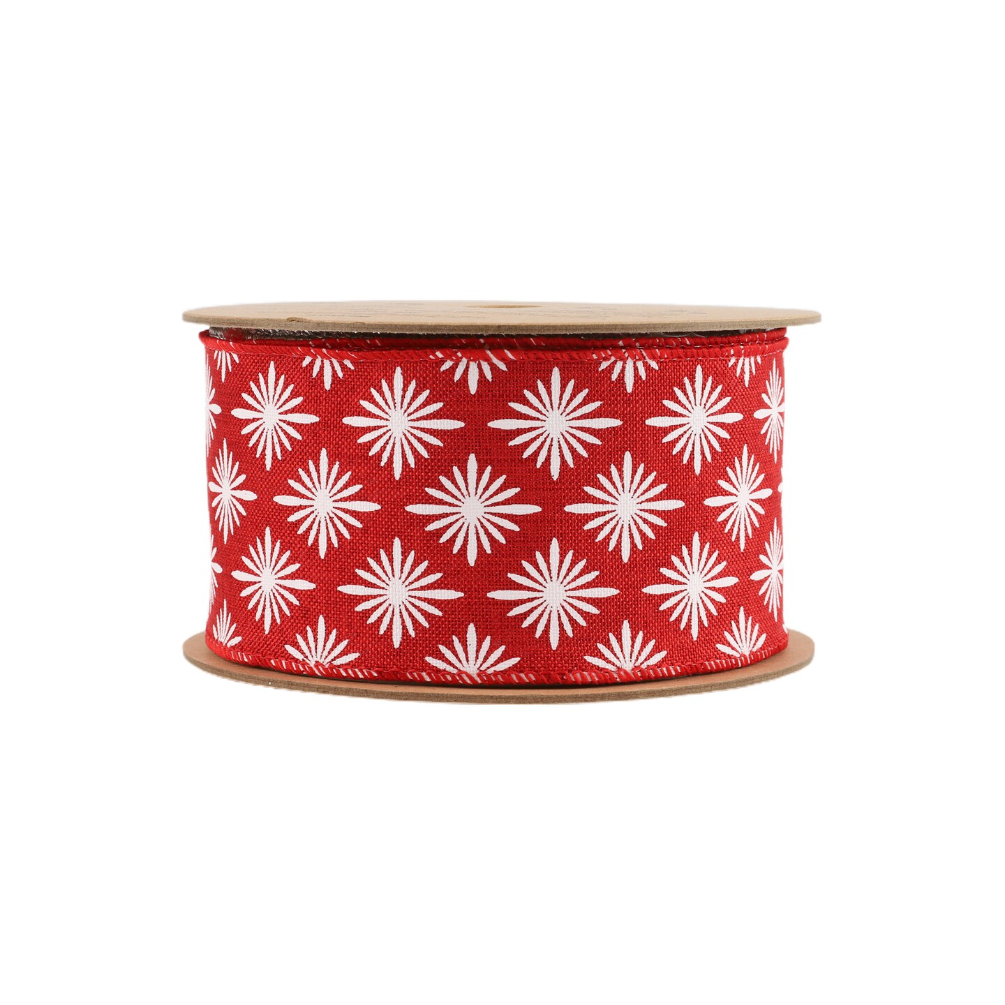 LaRibbons 2 1/2" Wired Ribbon, White Square Flower on Red, 10 Yard Roll