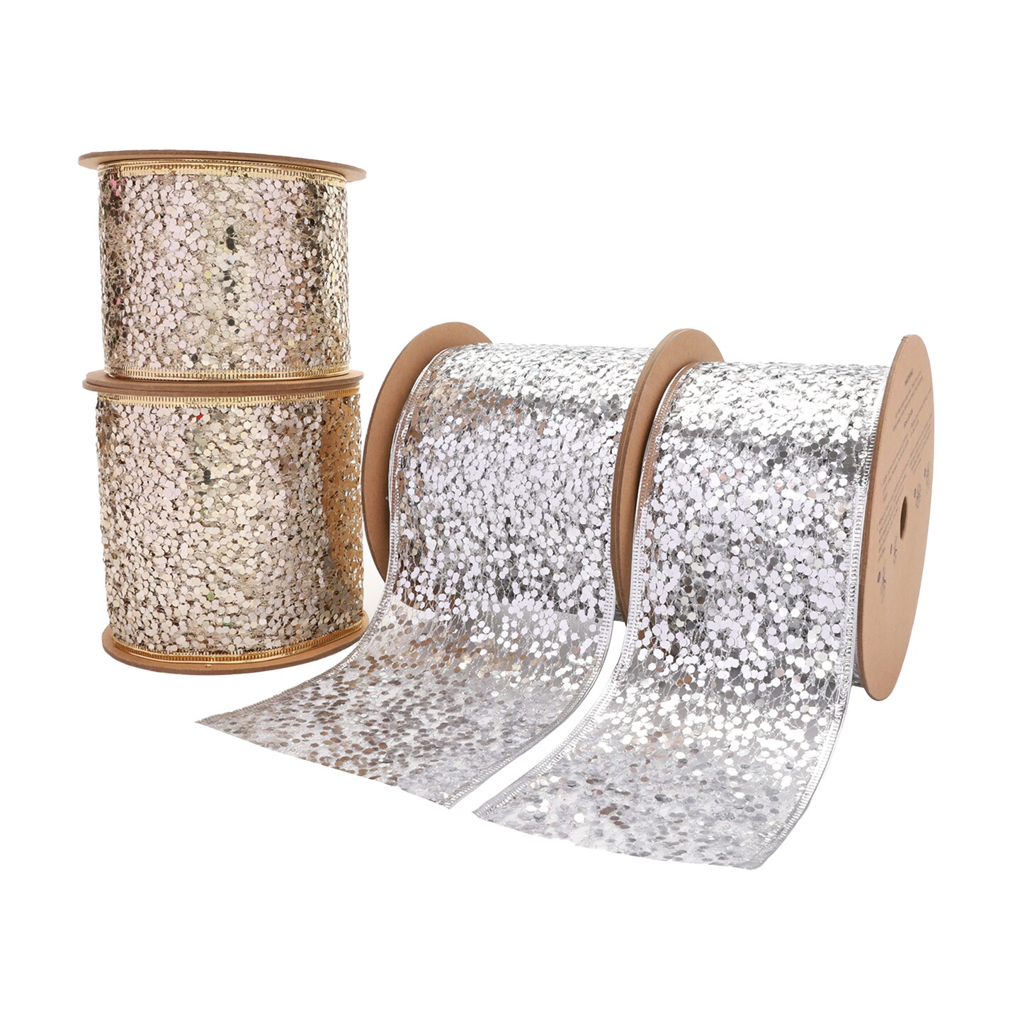 LaRibbons 4"- 2 1/2" Sequin Wired Ribbon | 10 Yard Roll