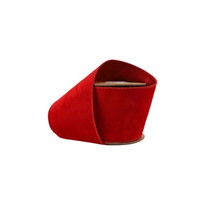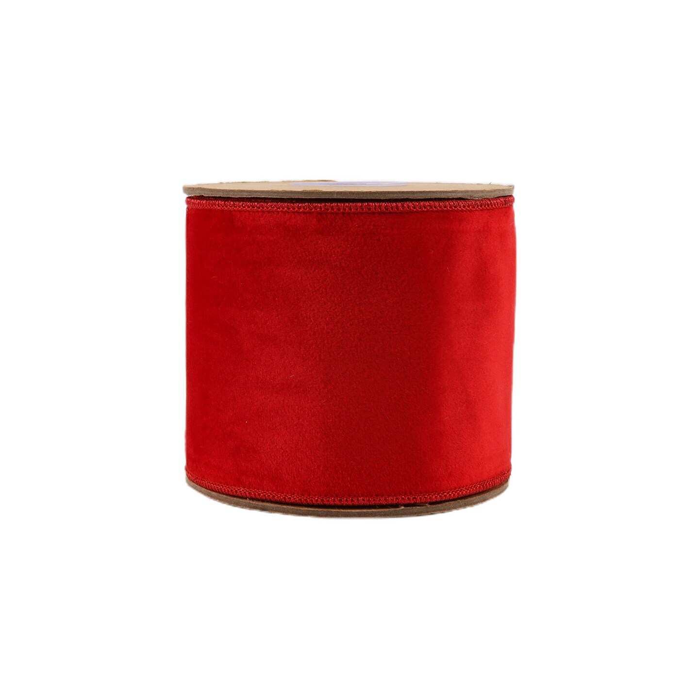 LaRibbons 4" - 2 1/2" Wired Cozy Velvet Ribbon | Red w/ Double-Fused Metallic Red Dupioni | 10 Yard Roll