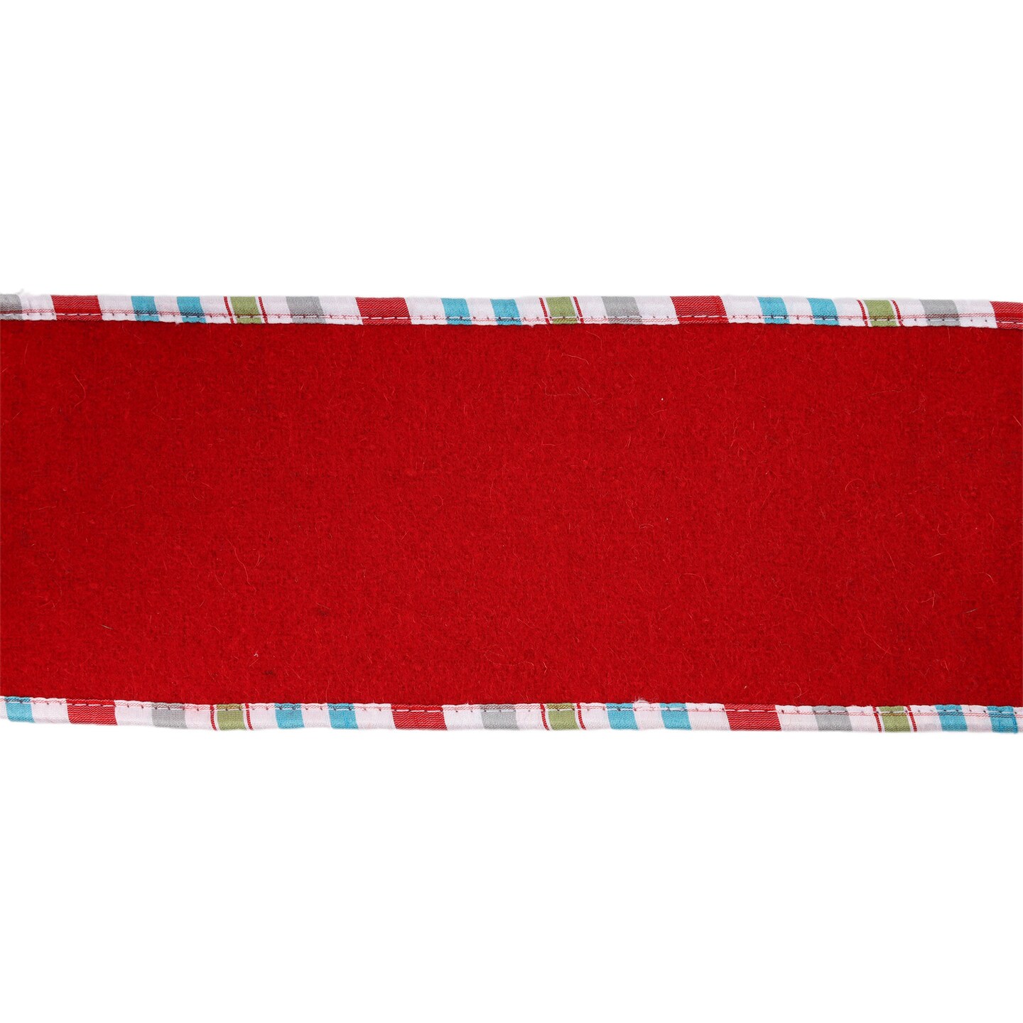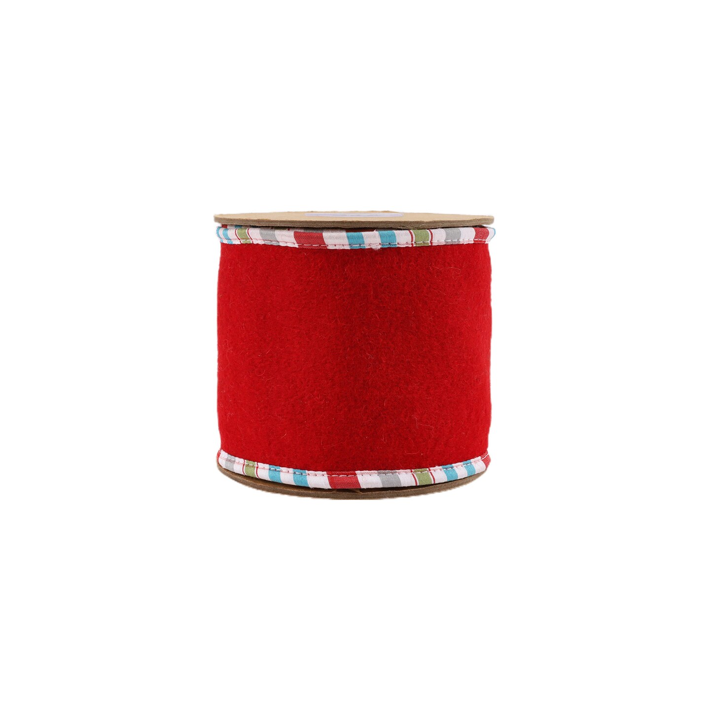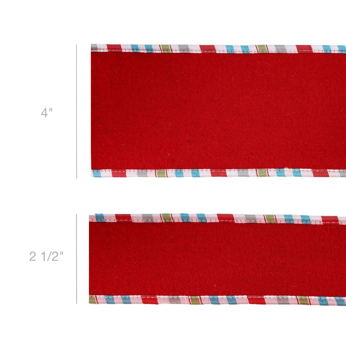 LaRibbons 4" - 2 1/2" Wired Ribbon | Red Felt w/ Teal Plaid Edging | 5 Yard Roll