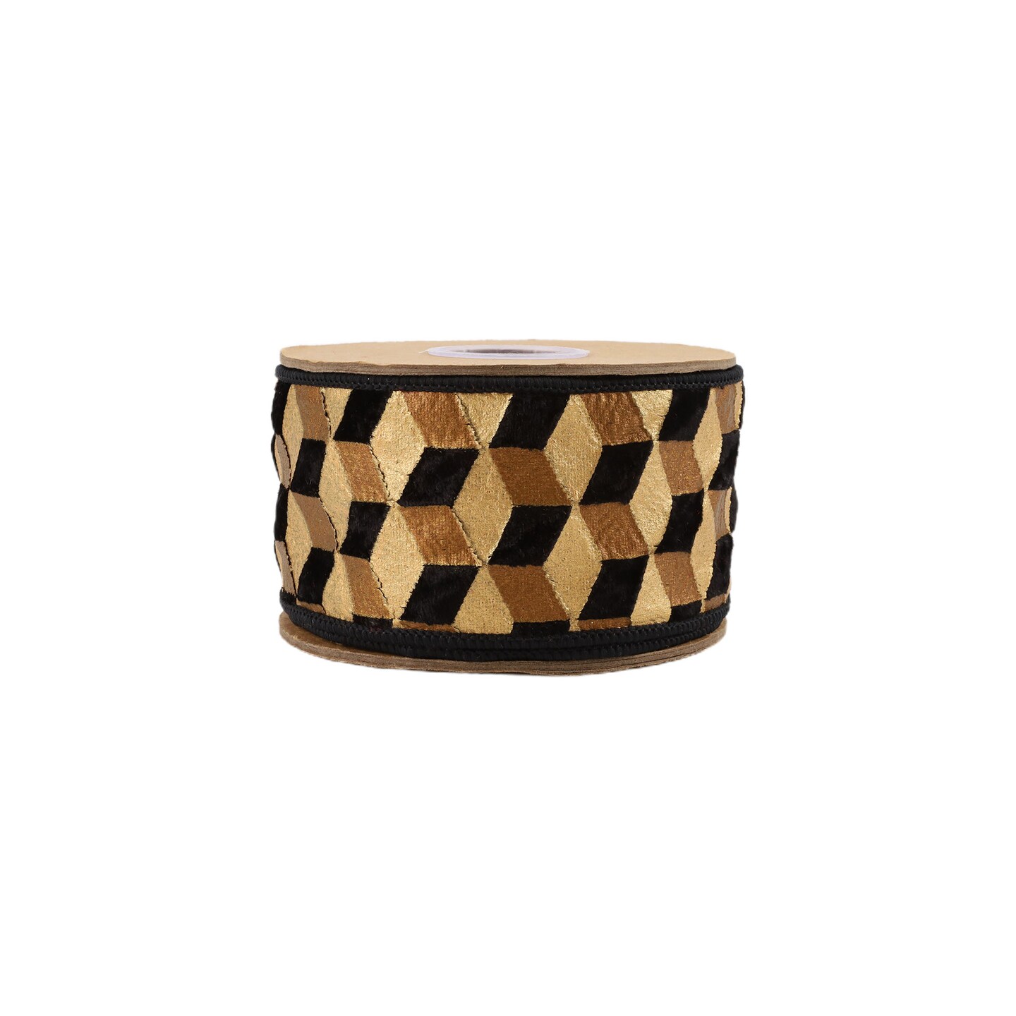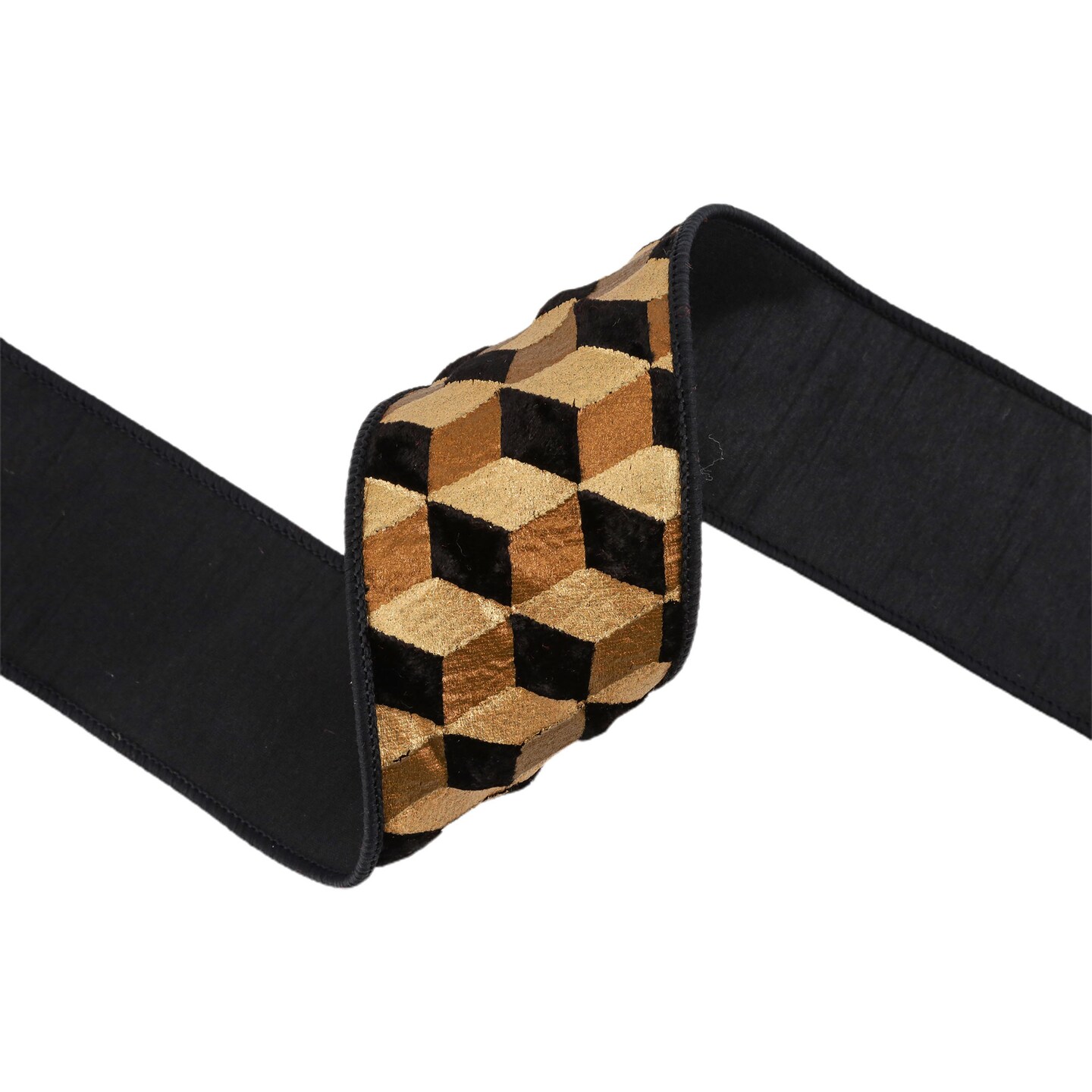 LaRibbons 4" - 2 1/2" Wired Velvet Ribbon | 3D Block Foil Print on Black | 5 Yard Roll