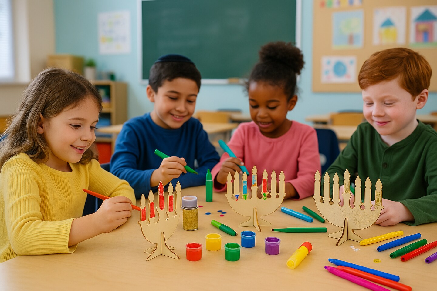Laser Cut Self Standing Wood Menorah Craft Kit, 7.5" x 7" – DIY Chanukah Classroom & Holiday Decoration (1 Pack)