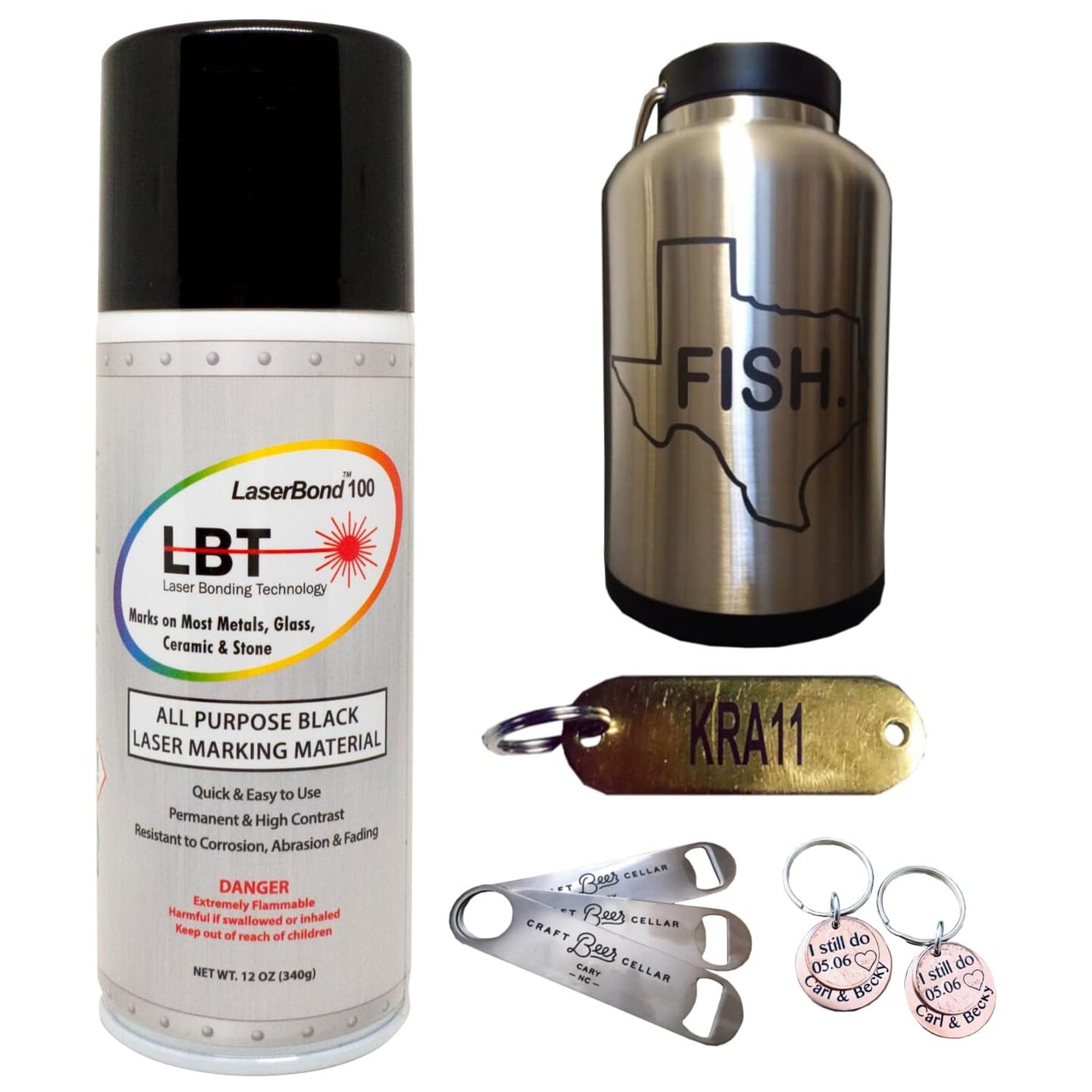 LaserBond 100 Aerosol Black Laser Marking Spray 12 oz, Compatible with CO2 Fiber Diode and YAG Laser Engravers, Permanent Marks on Metal Glass Stone and Ceramic (1)