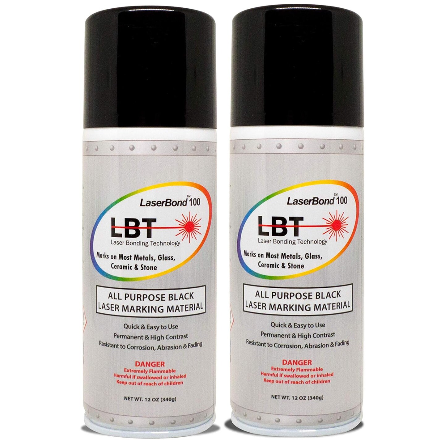 LaserBond 100 Aerosol Black Laser Marking Spray 12oz, Compatible with CO2 Fiber Diode and YAG Laser Engravers, Permanent Marks on Metal Glass Stone and Ceramic (2)