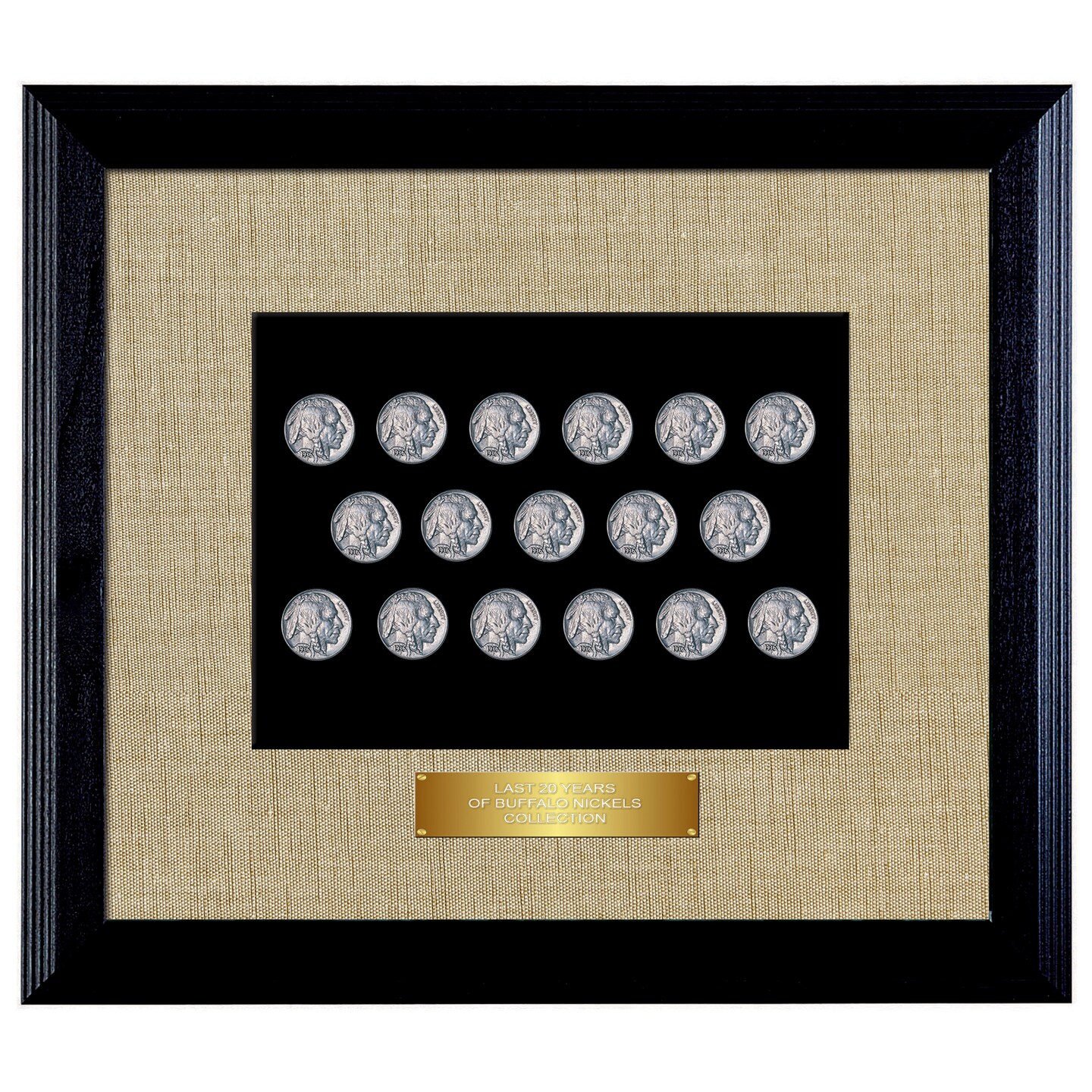 Last 20 Years of Buffalo Nickels in Wood Frame