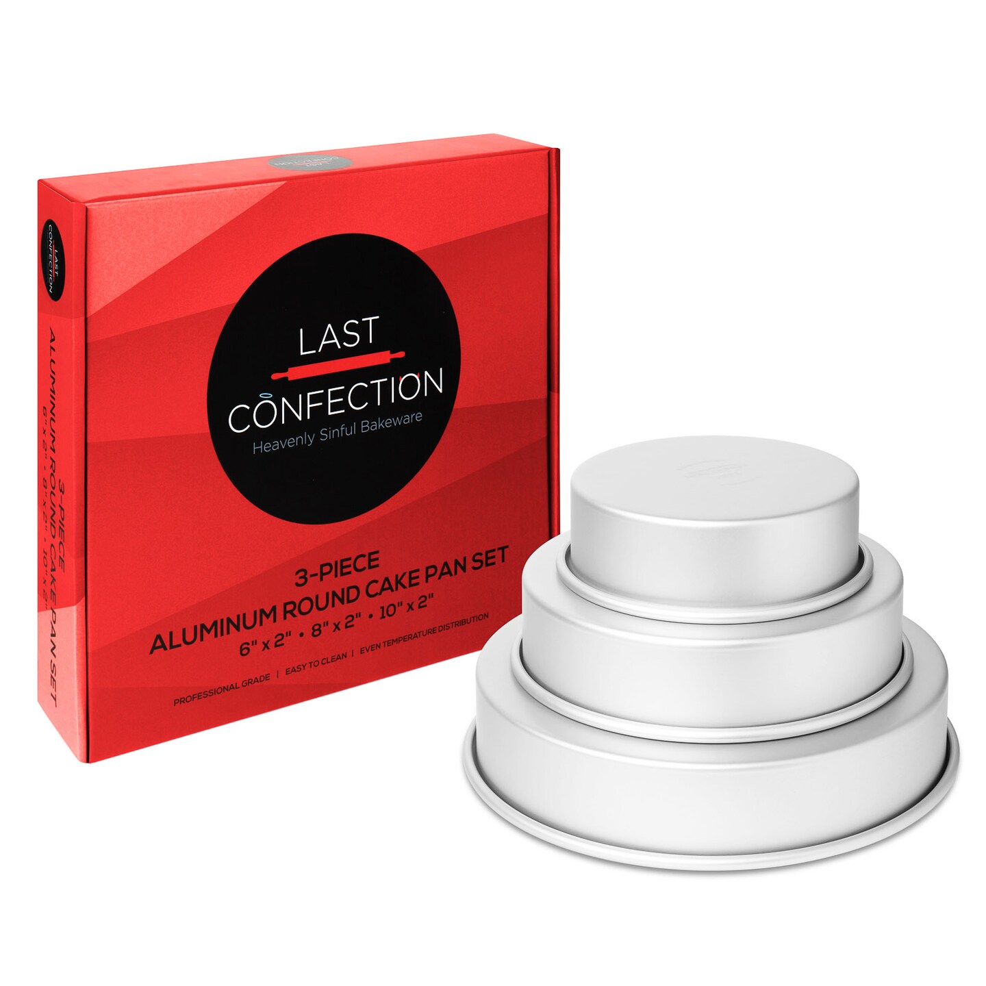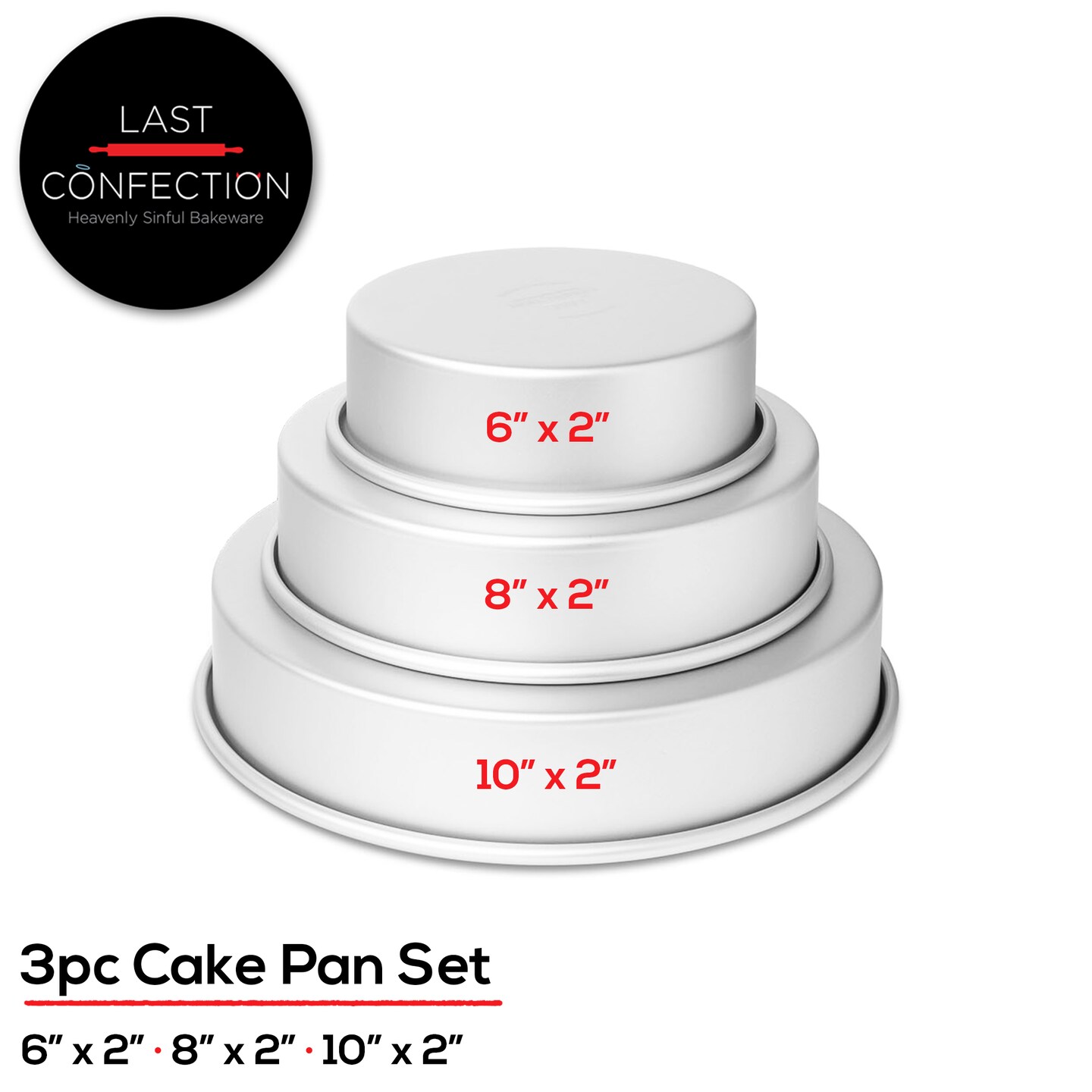 Last Confection 3-Piece Round Cake Pan Set - Includes 6", 8" and 10" Aluminum Pans 2" Deep