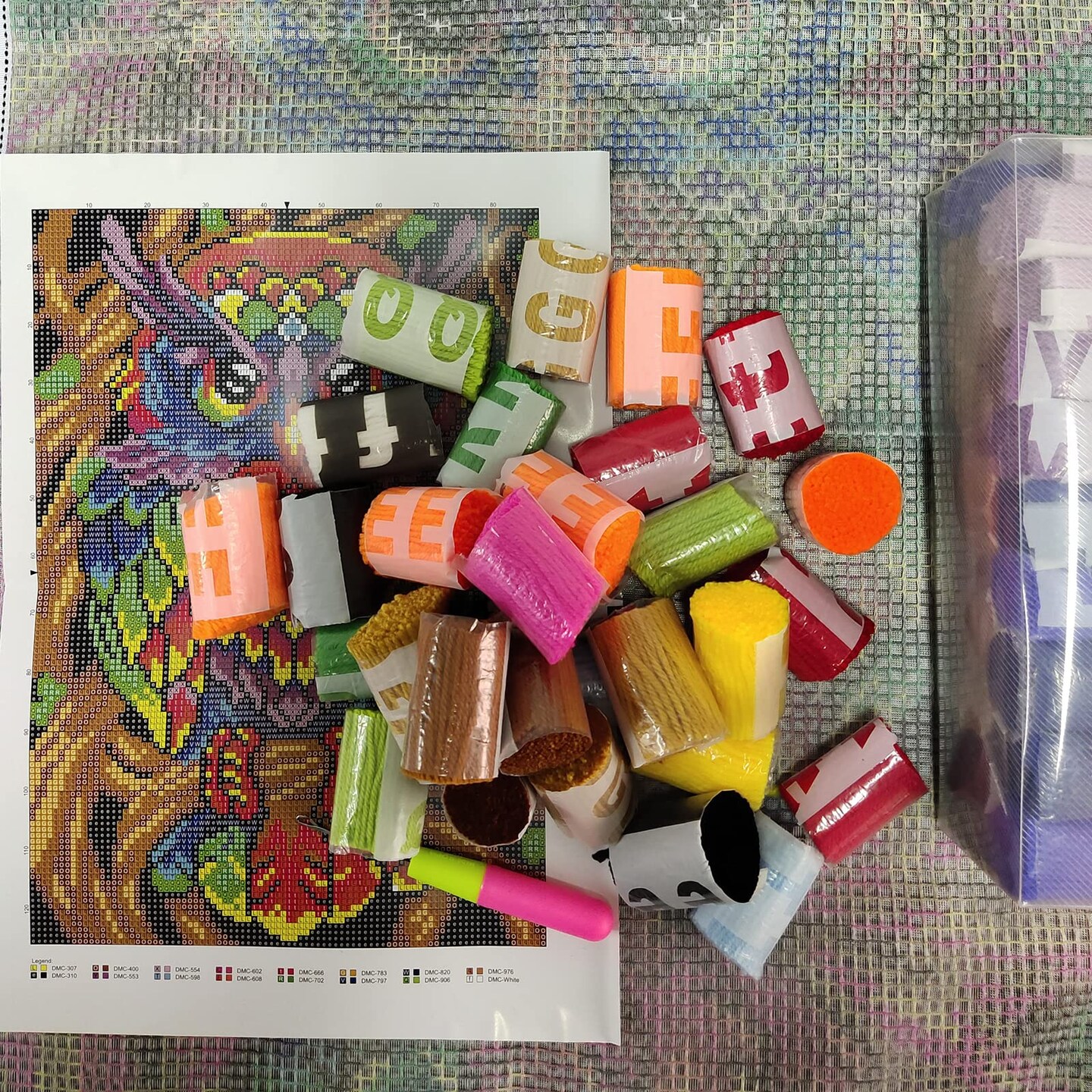 Latch Hook Rug Kits for Adults, Colorful Owl with Preprinted Canvas Pattern DIY Carpet Tapestry Rug Cushion Yarn Needlepoint, 22.5X33.5Inch / 58X85cm