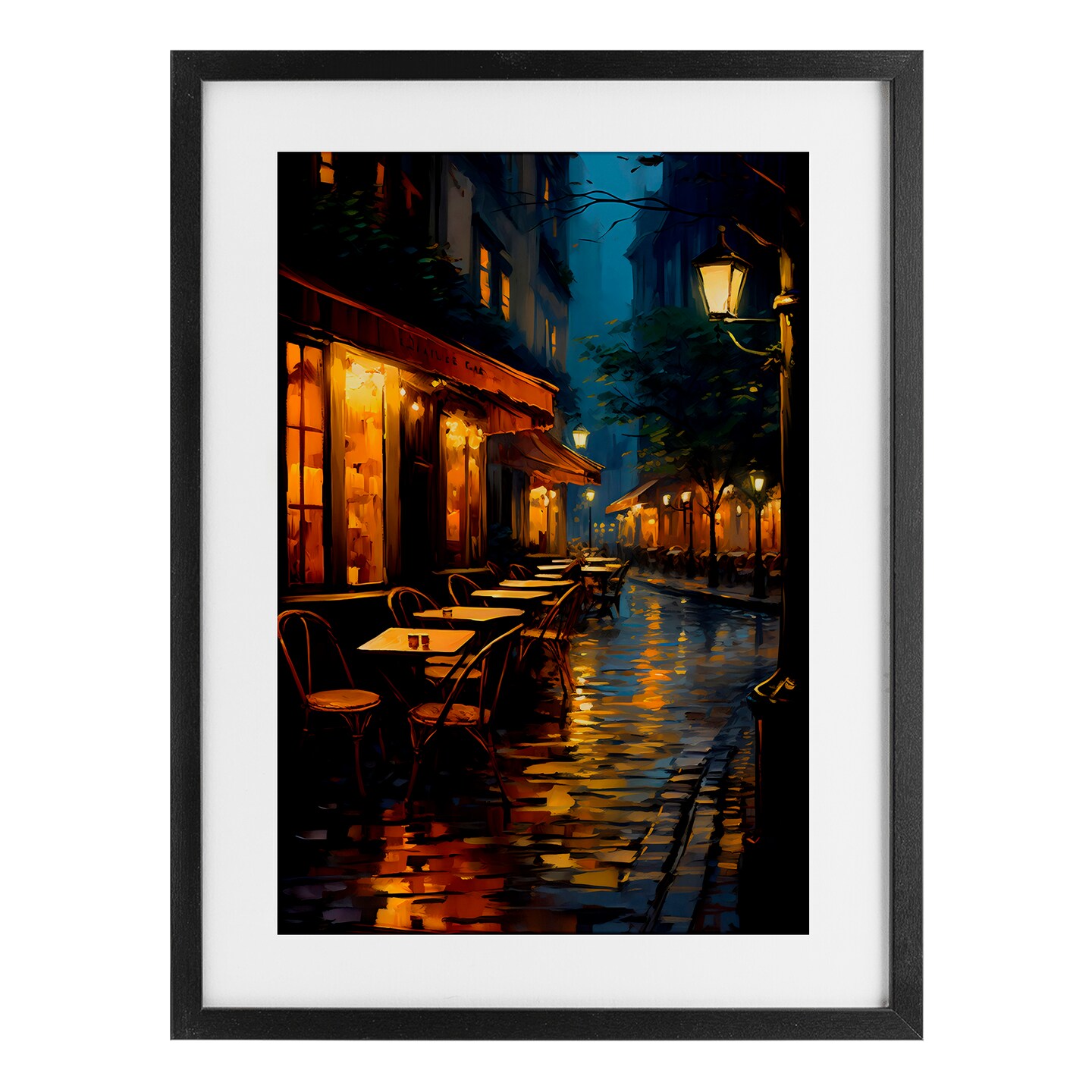 Late Night Cafe Tables Framed Print Under Glass Art