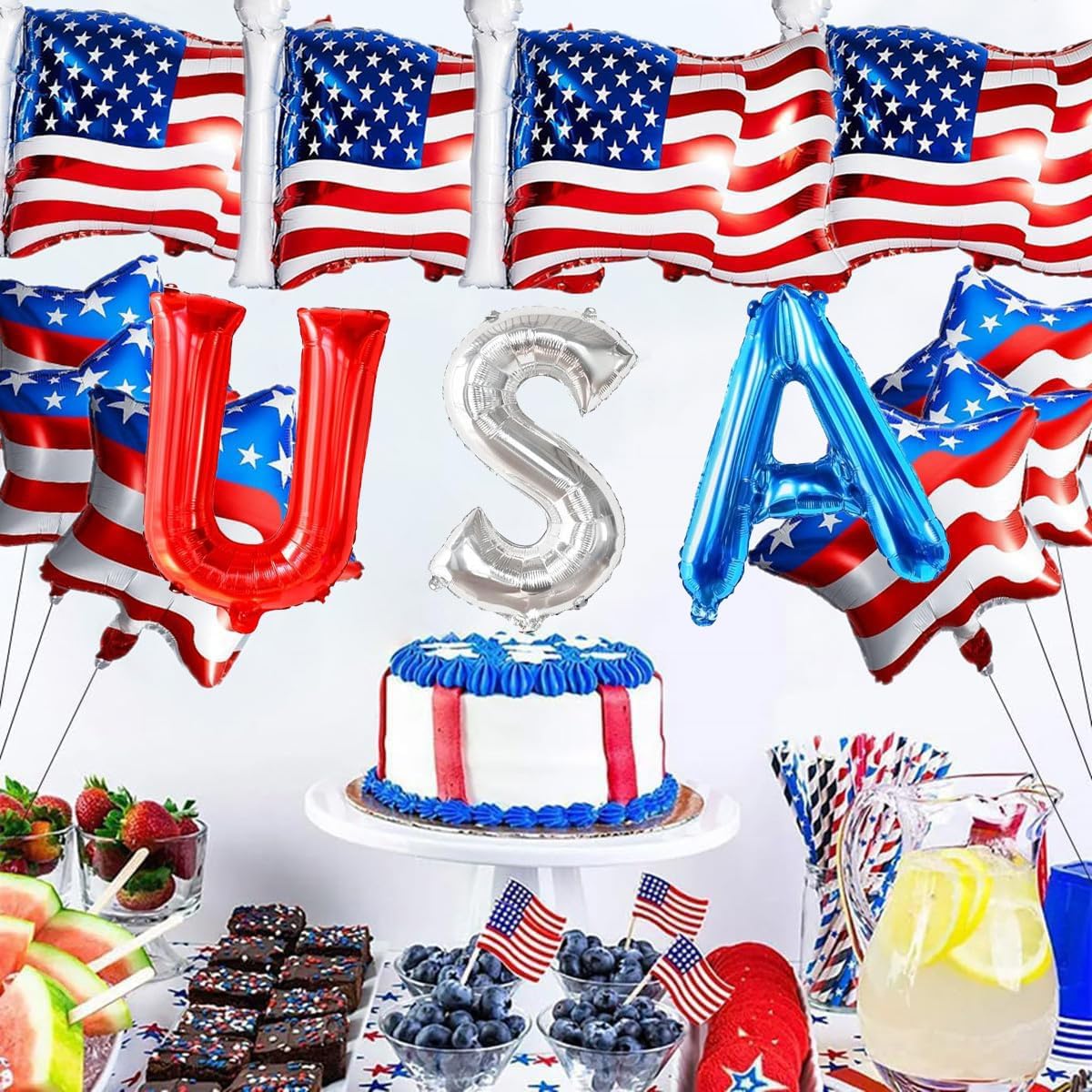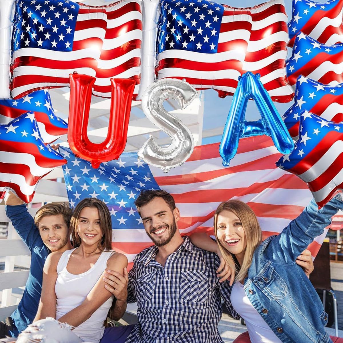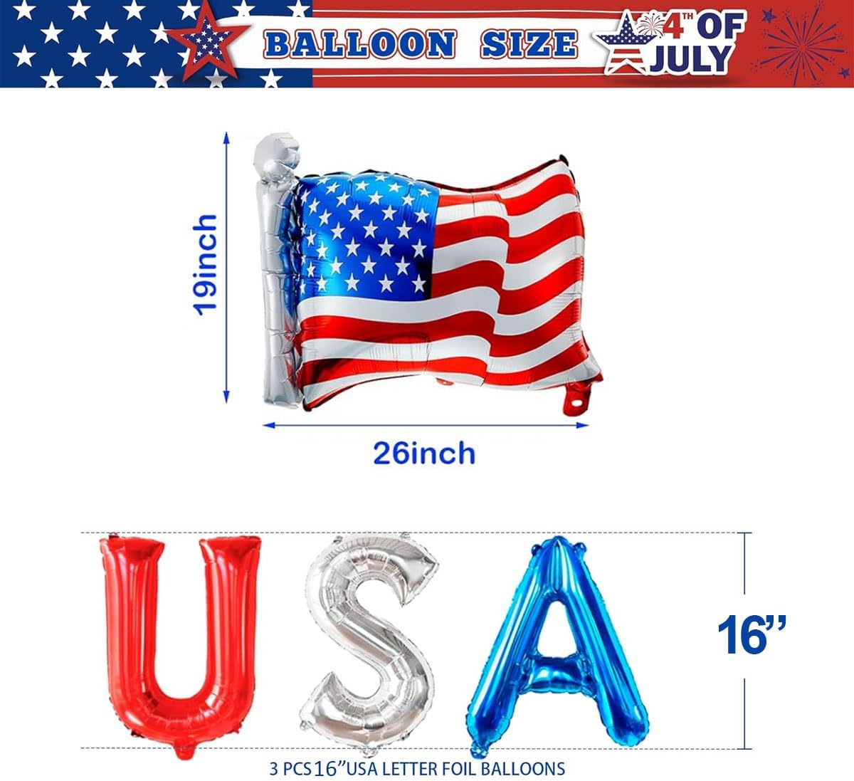 Latex Balloons USA Letter Banner & American Flag Balloons – 4th of July Patriotic Decorations for Independence Day, Memorial Day & American-Themed Parties