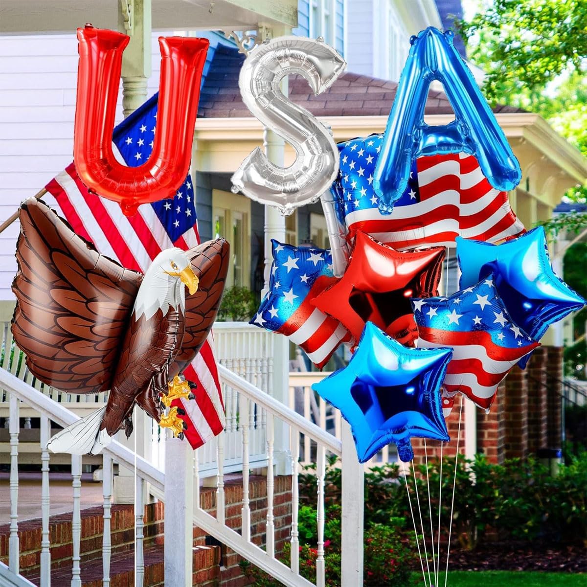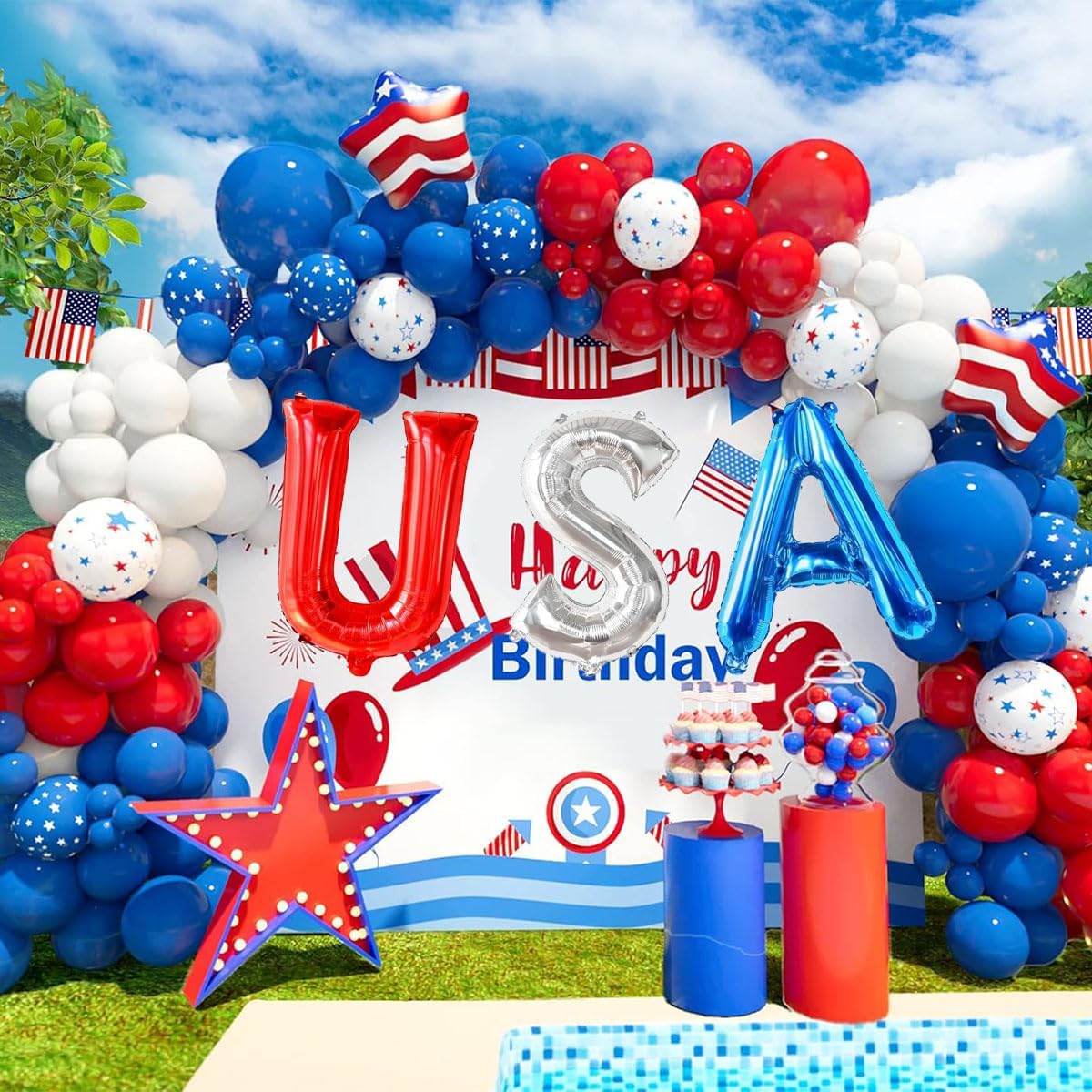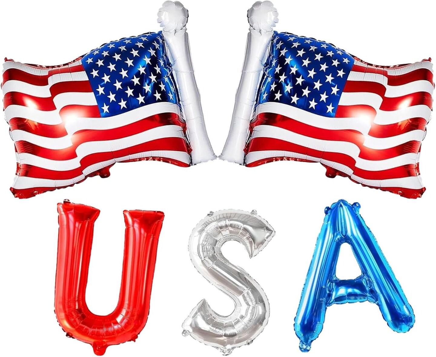 Latex Balloons USA Letter Banner & American Flag Balloons – 4th of July Patriotic Decorations for Independence Day, Memorial Day & American-Themed Parties