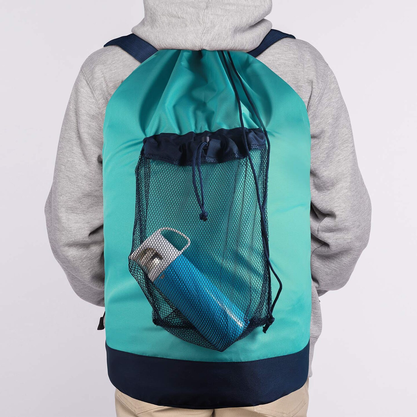 Laundry Backpack with Shoulder Straps and Mesh Pocket Durable Nylon Clothes Hamper Bag with Drawstring Closure for College, Travel, Laundromat, Apartment