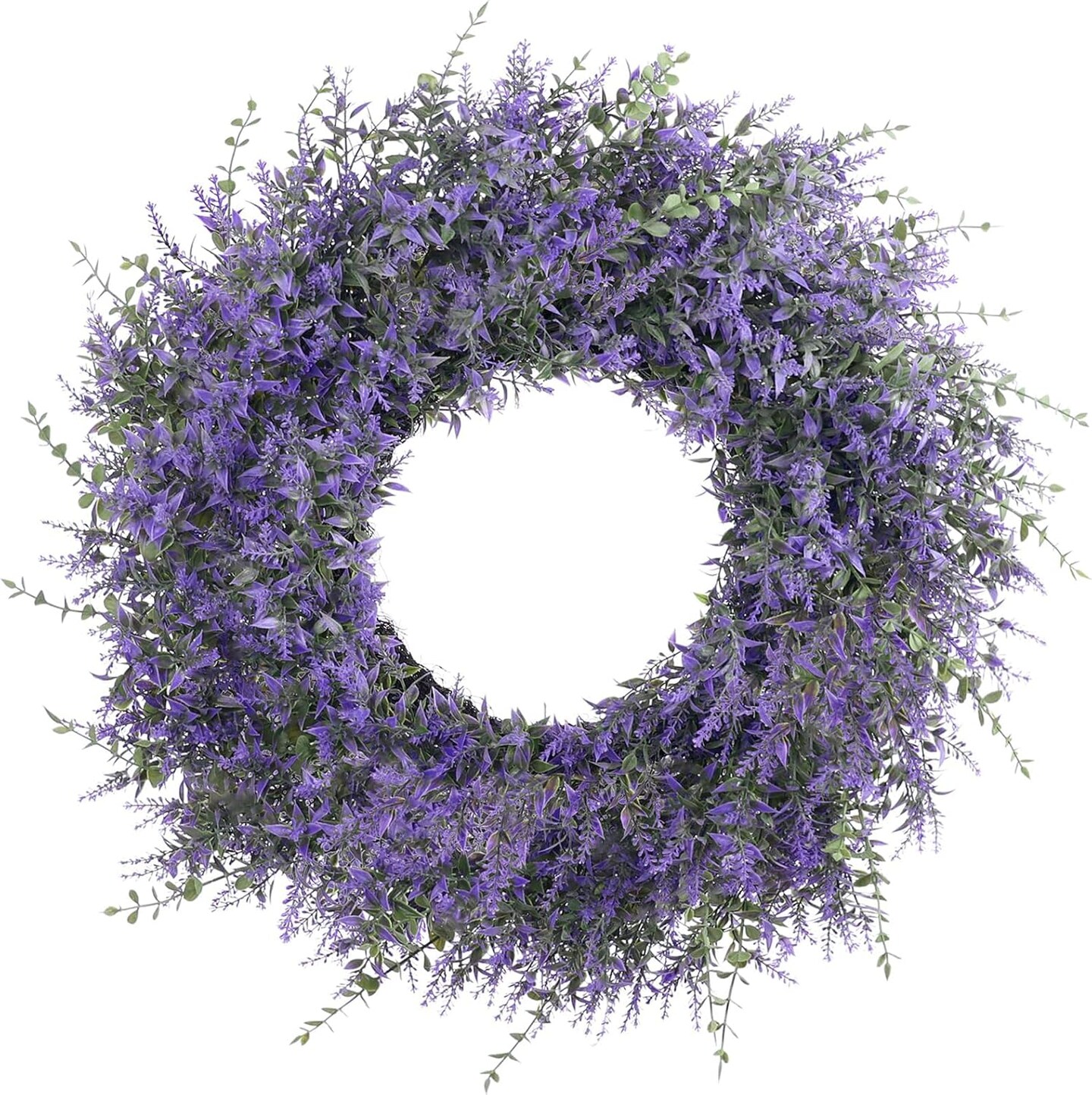 Lavender & Eucalyptus Wreath for Front Door, Porch, Window - Large Artificial Greenery Outdoor Wreath for Home, Farmhouse Decor - Spring, Summer