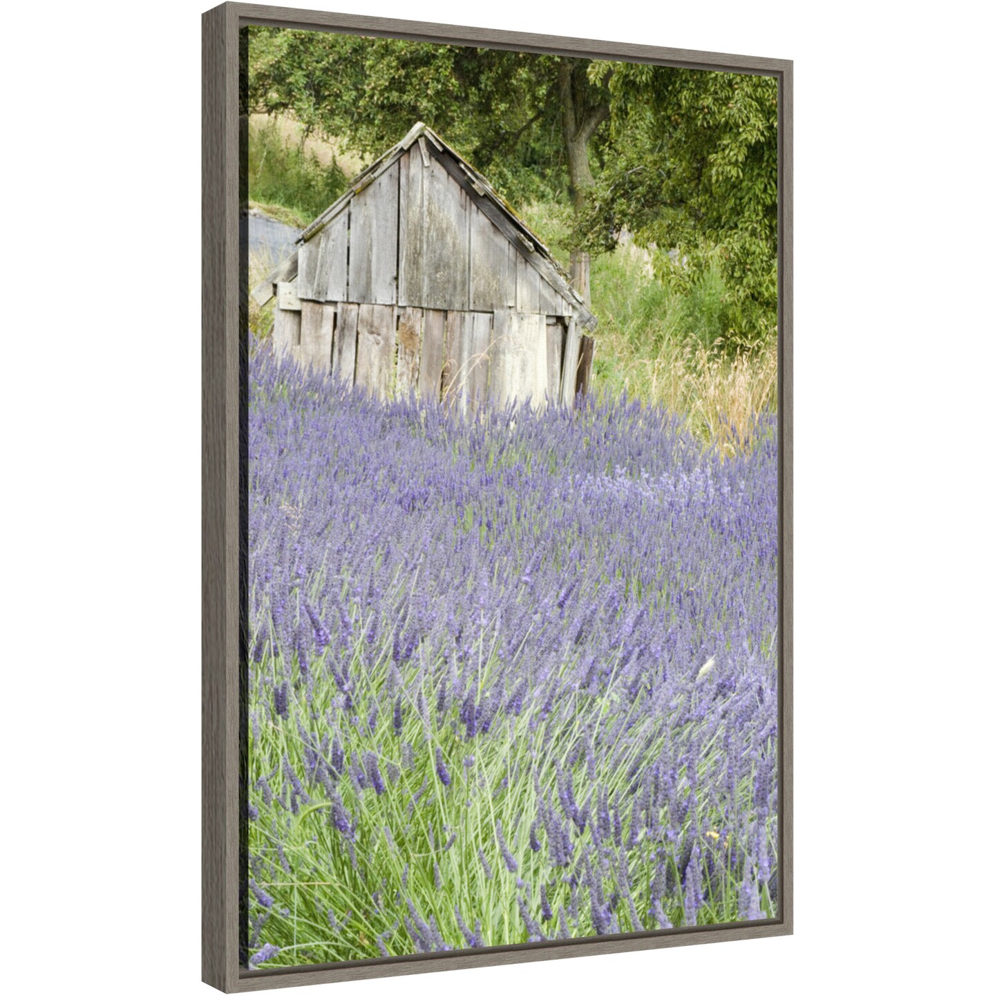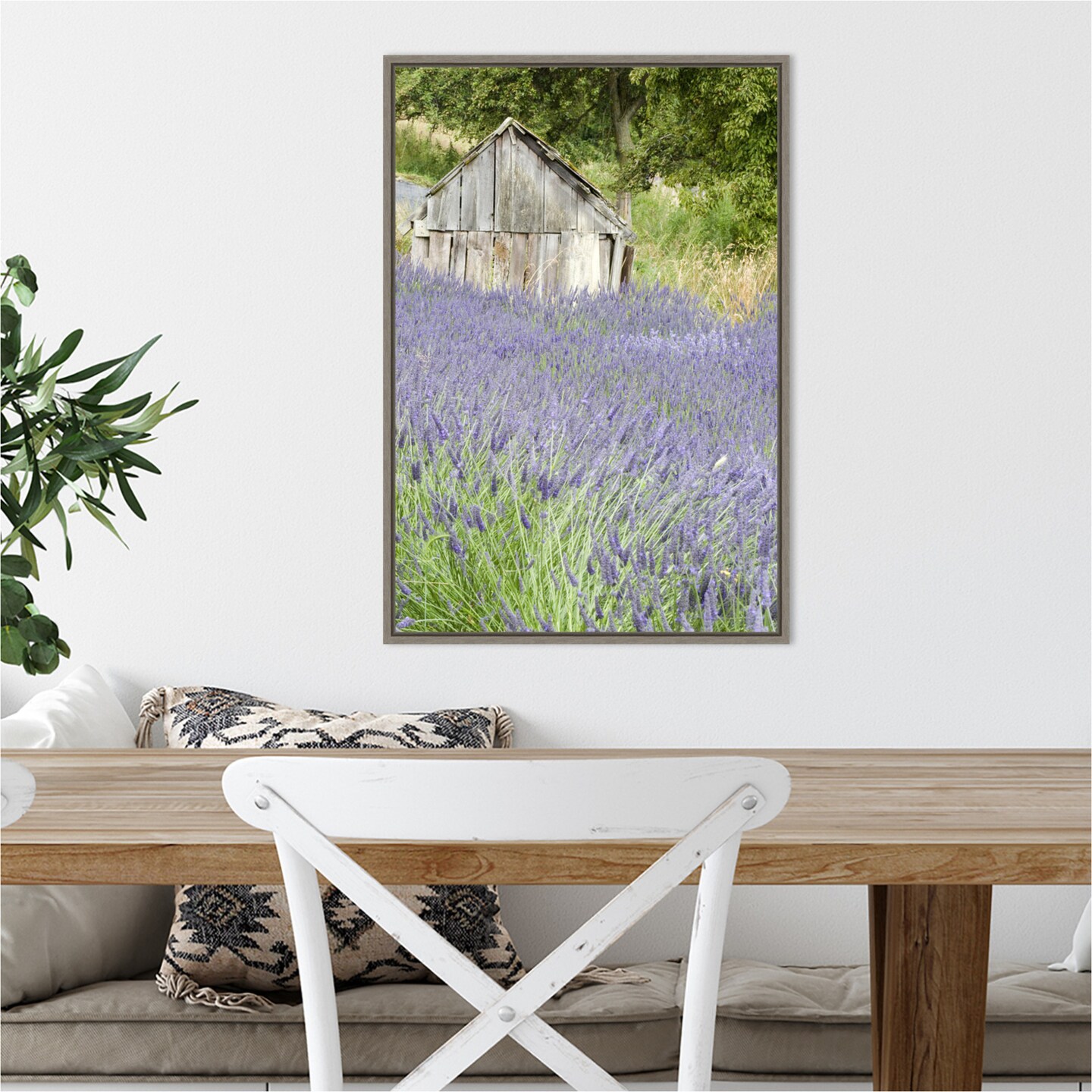 Lavender field and small shed by Janell Davidson Danita Delimont 16-in. W x 23-in. H. Canvas Wall Art Print Framed in Grey