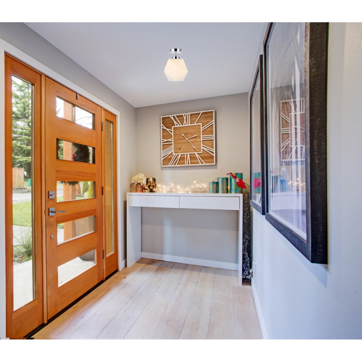Lawrence 1 light chrome and white glass flush mount